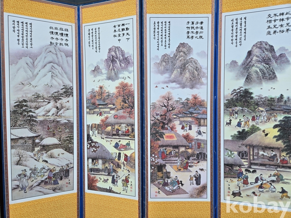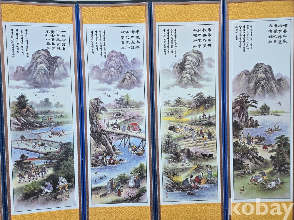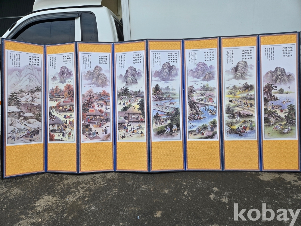 민속 풍경 표현 8폭 병풍 입니다.