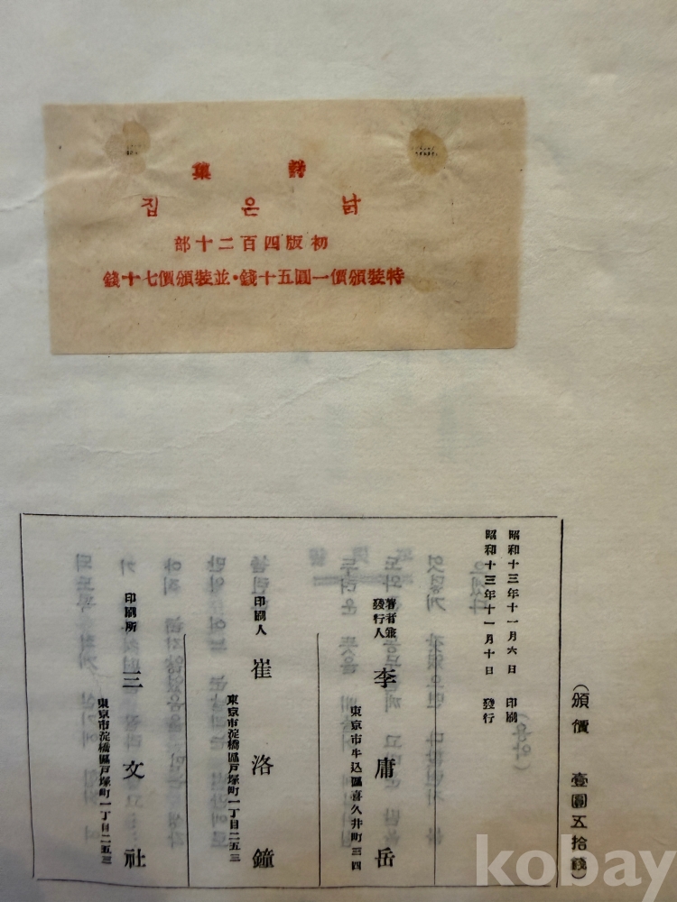 물 품 명 | <취향지가> [9] 1938년 발행, 월북 작가 이용악(李庸岳)의 제2시집 [낡은 집] 저자 서명 초판본 1책(420부 한정판) | |||||