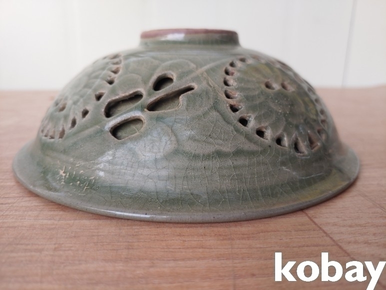 문양이 양각으로 있는 투각 다완 입니다.