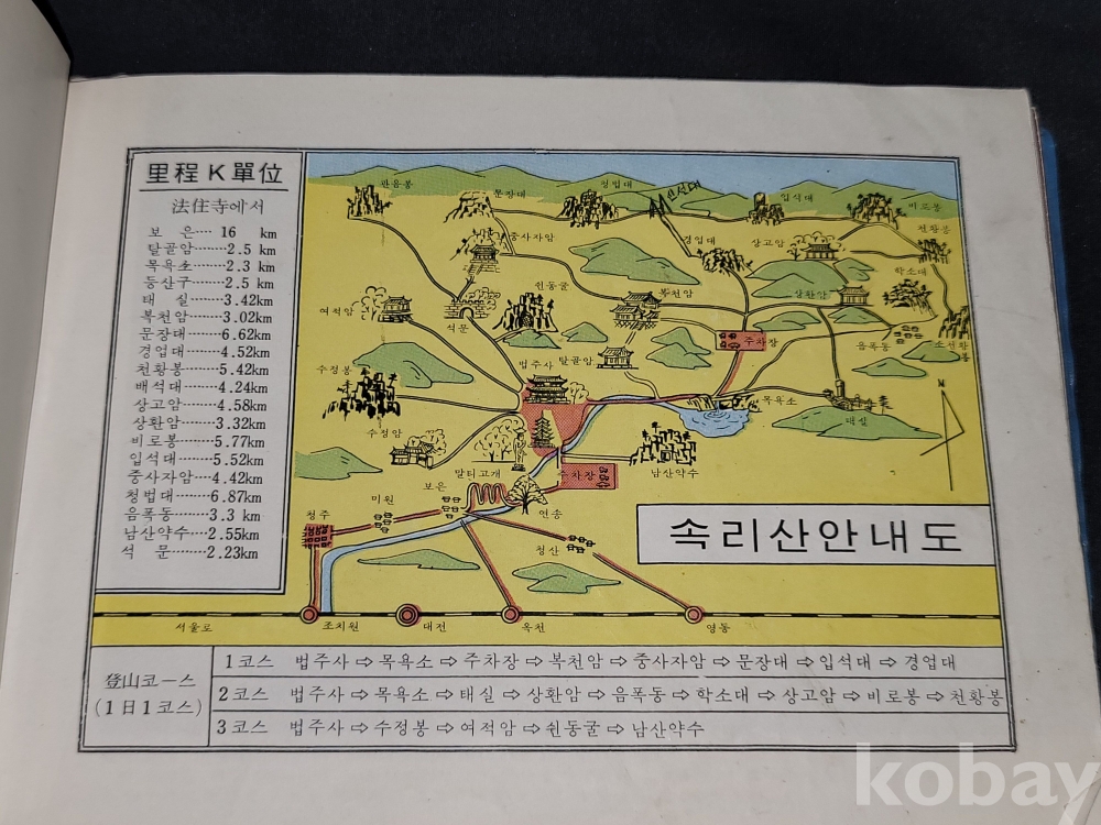 빈티지 세월 감이 느껴지는 70년대 추정 경주 불국사 관광기념 책자, 속리산 관광책자 등 2종 일괄입니다.