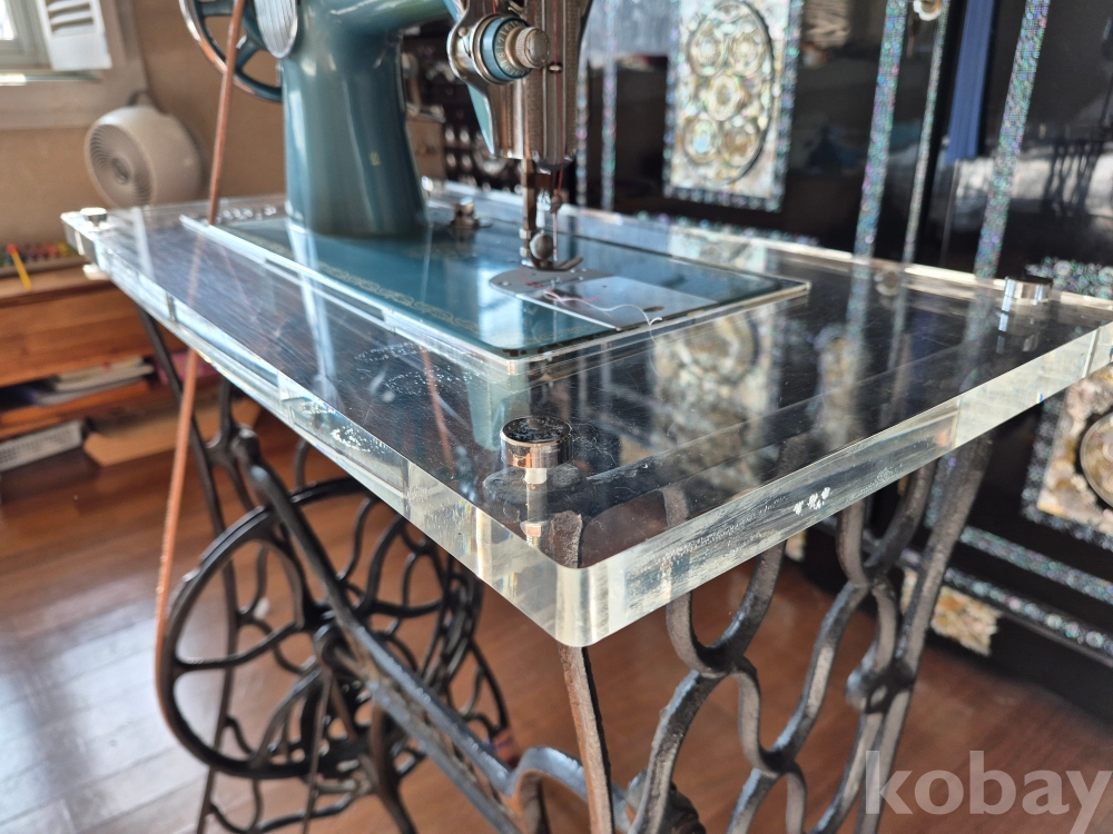 미싱 테이블은 을지로에 가서 아크릴로 맞춤 제작했고요. (사진으로 아크릴 두께 확인해보세요)