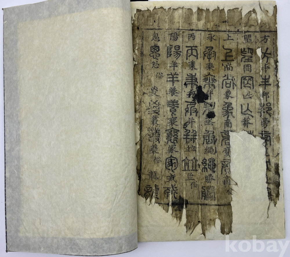 설 명 | 1651년(효종 2) 경유겸(景惟謙, 1586~?)이 편찬한 자서(字書)로 석비(石碑)의 제액(題額)으로 널리 쓰인 전서(篆書)를 알아보기 쉽게 정리해 놓은 책이다. 서발문이 없으나 장서각의 판본과 같음이 확인된다. 전운편람(篆韻便覽)의 제목부터 ‘십음유초’까지 25장이 없고, 상방(上方)의 29장의 반장, 31장부터 35장까지 낙장이다. 전자옥편(篆字玉篇)은 제목부터 시작하여 총 44장 중 20장만 남아있다. (서발문 없음) 전체가 배접 수리되어 참고자료로 활용하는 것이 좋을 듯 하다. | |||||