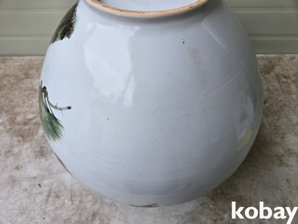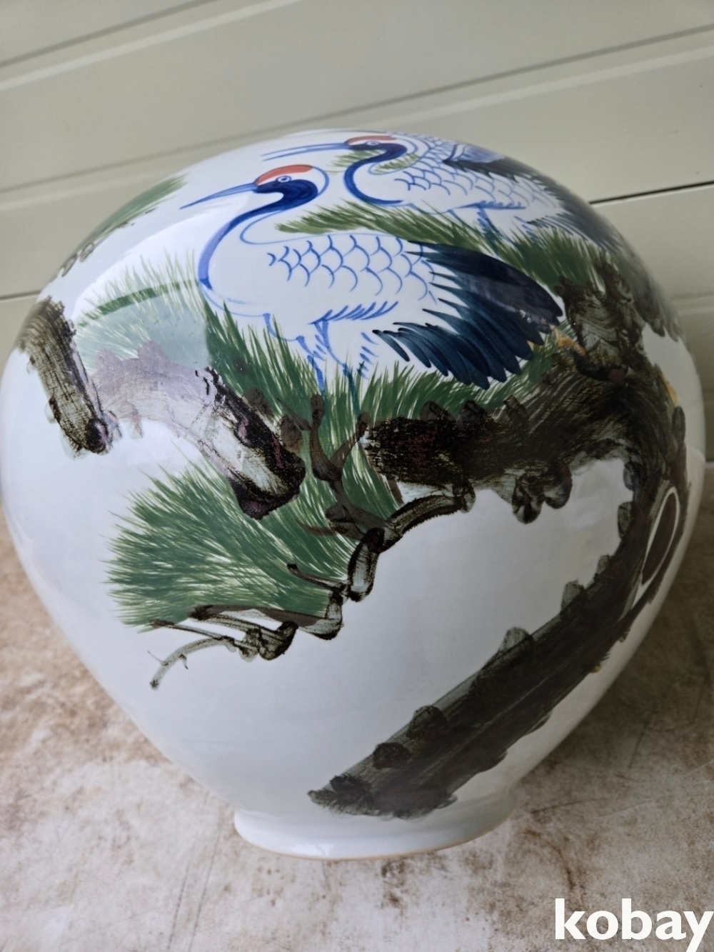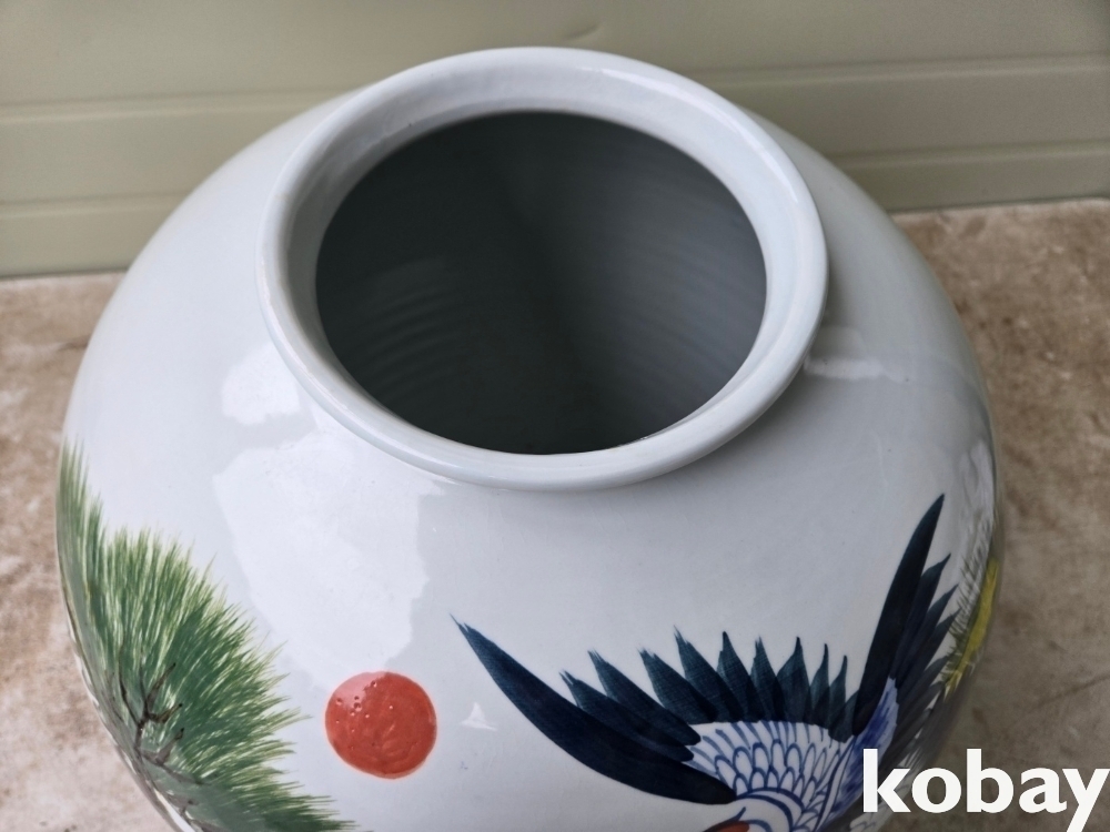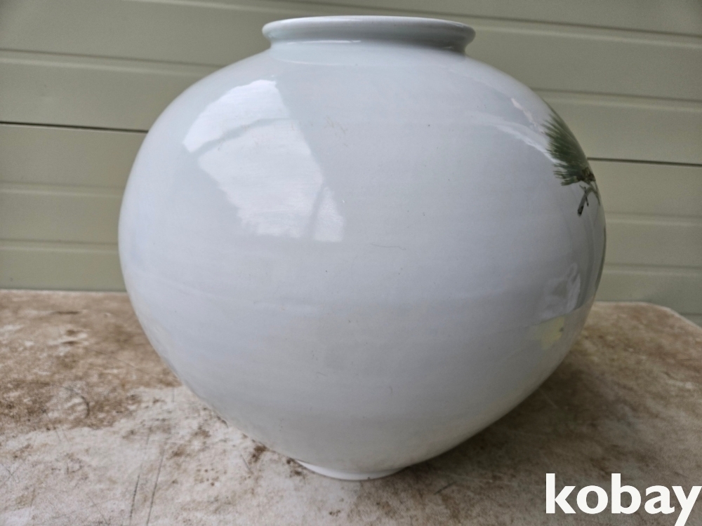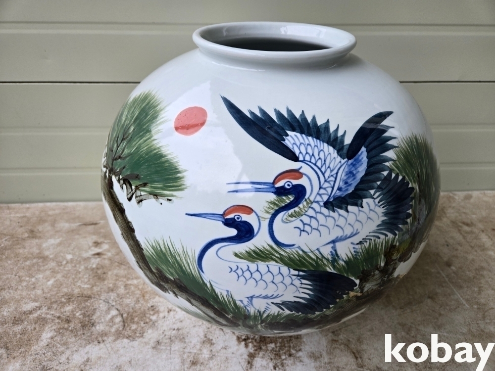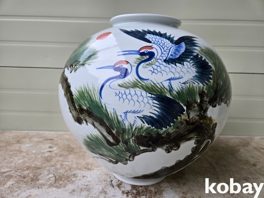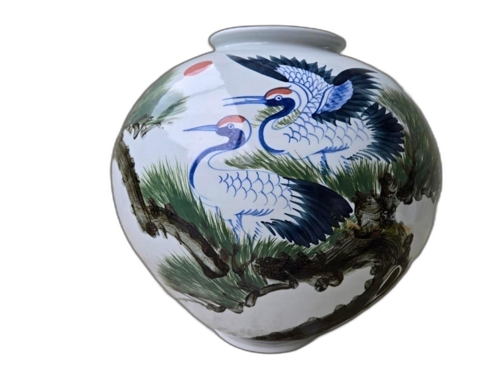 소나무와 학 표현 달 도자기 입니다.
