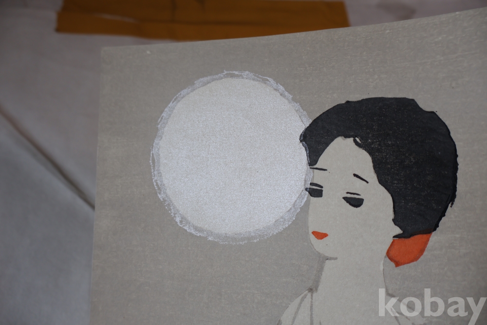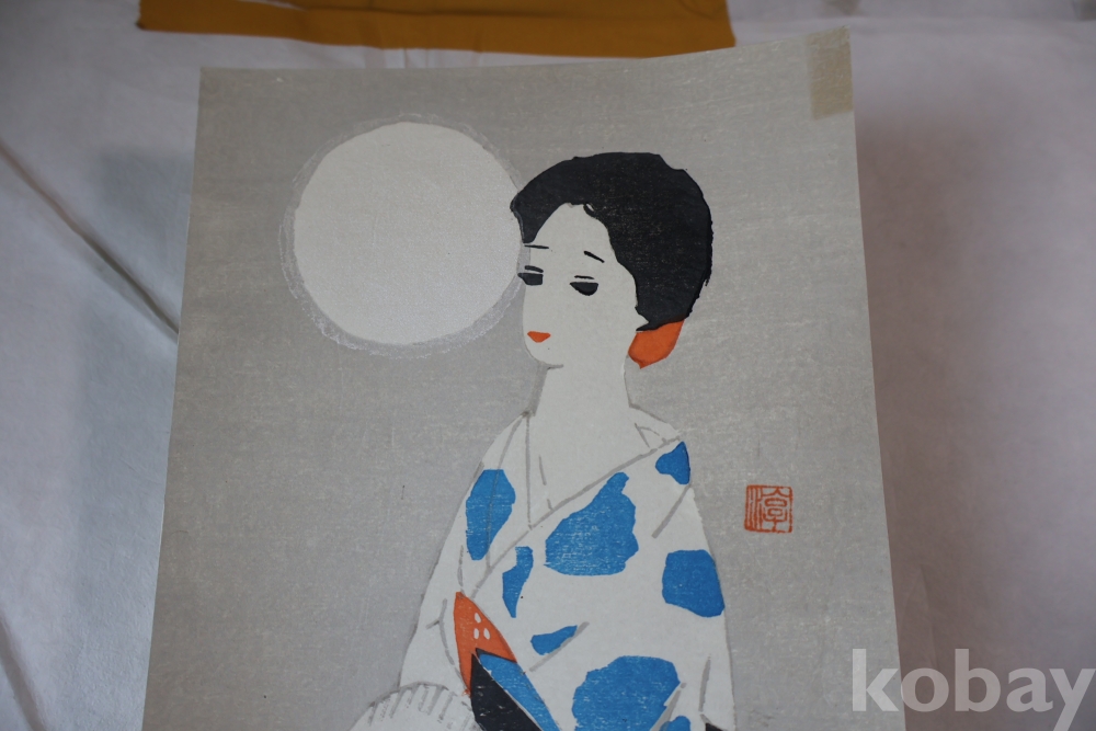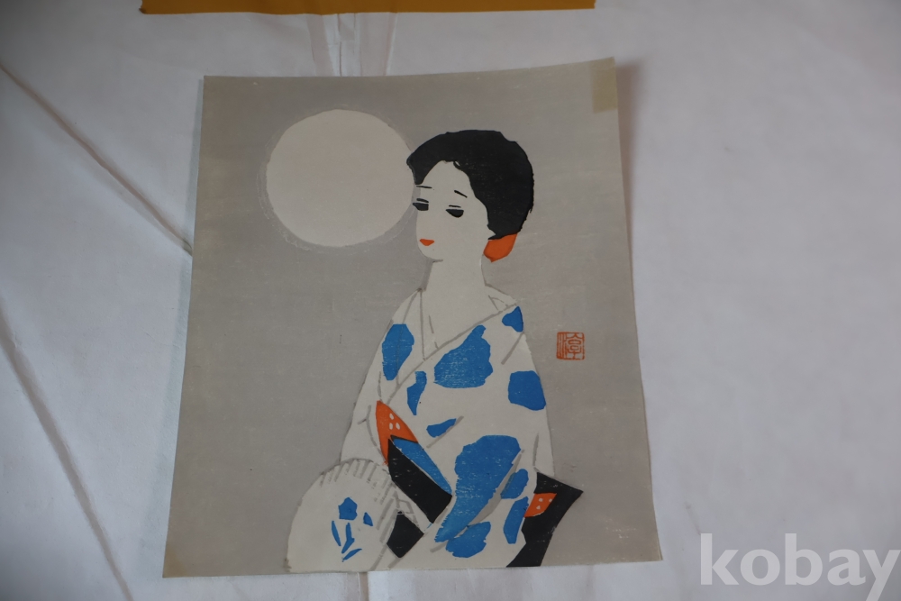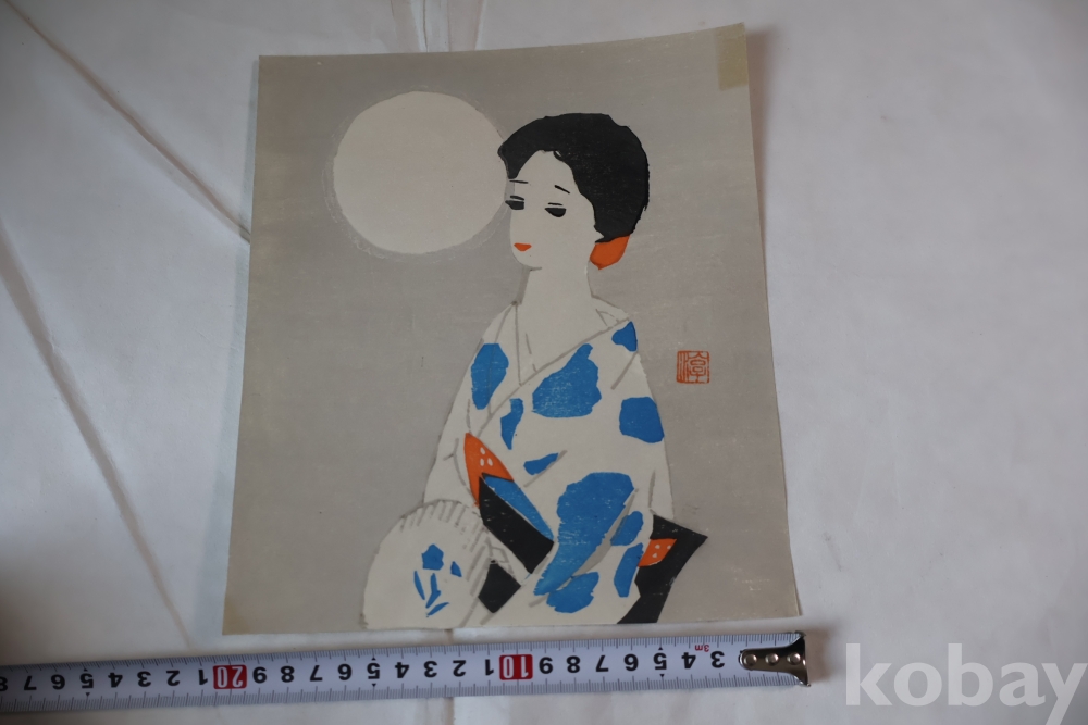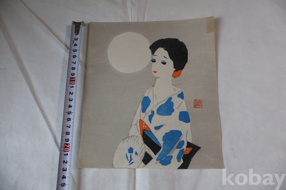목판화 임니다 멋진 배경 미인의 모습 달의 표현 등등 화가의 혼을 가진 명화 임니다 사진 참조 하세요 테이프 흔적이 보임니다