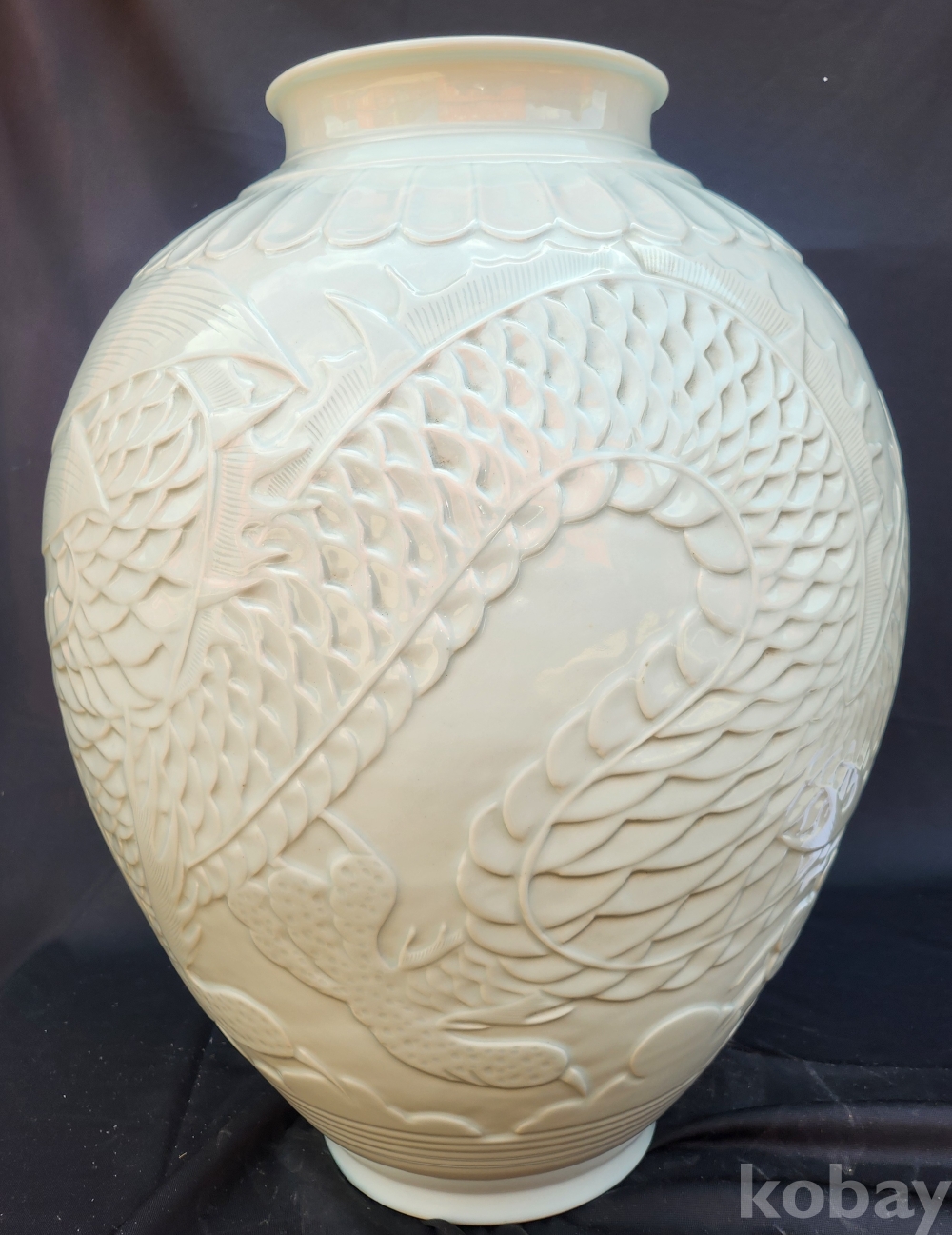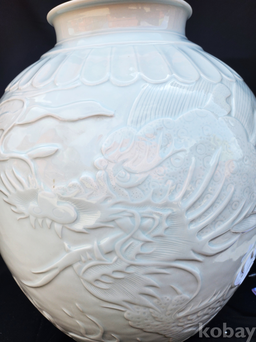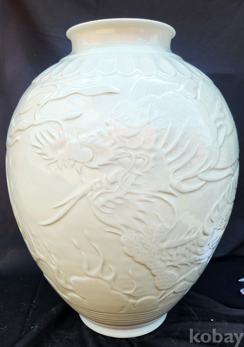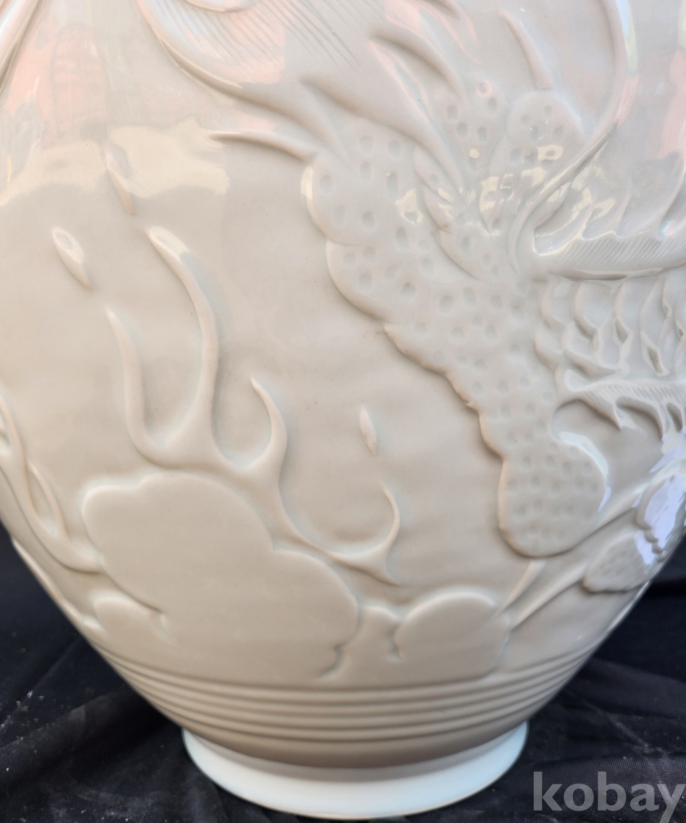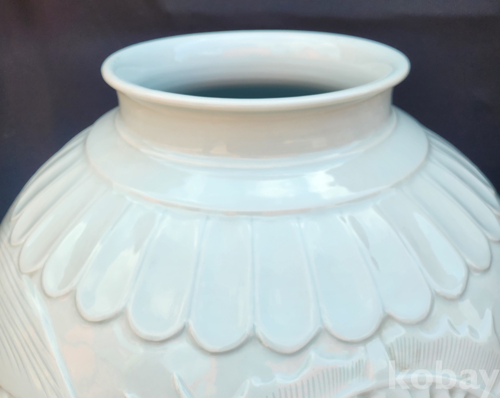 < 1세대 여류 도예가 > 명장 월당(月堂) 이순길(李順吉) 백자음각양각운룡문대호 白磁陰刻陽刻雲龍文大壺