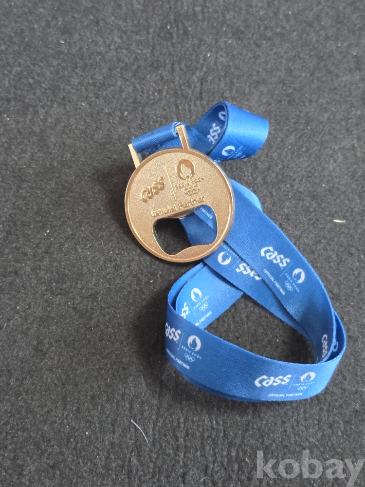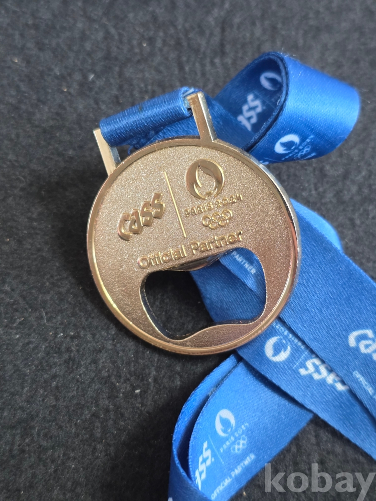 (((술자료/오프너))) 2024 파리올림픽 OFFICIAL PARTNER CASS 맥주 메달모습 금속 오프너 (미사용)