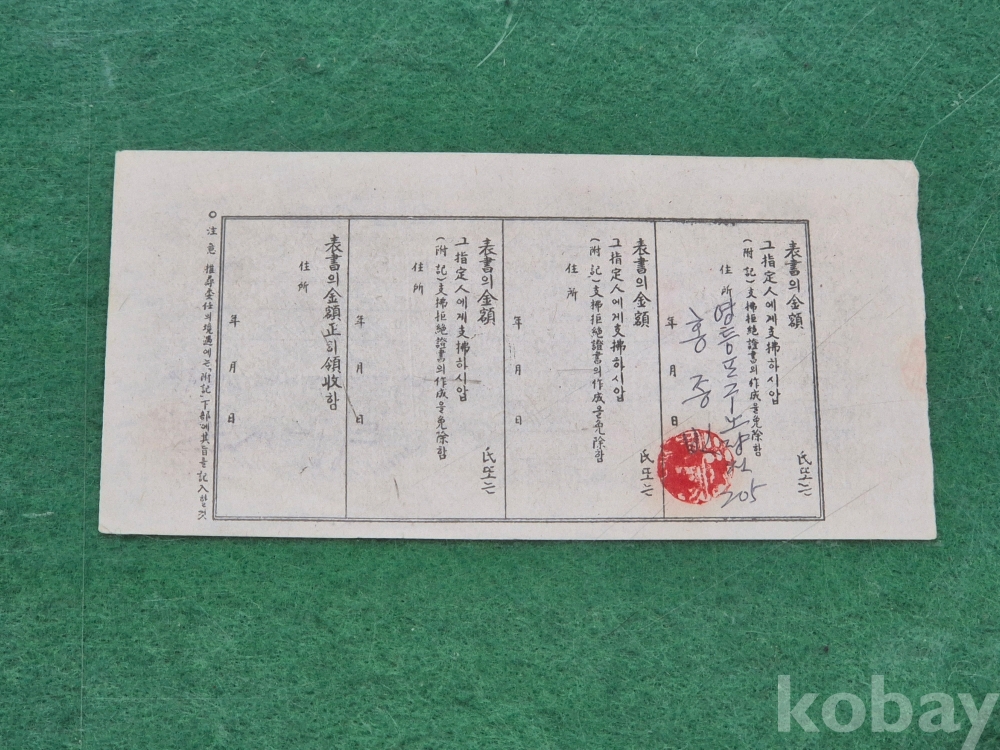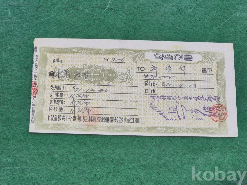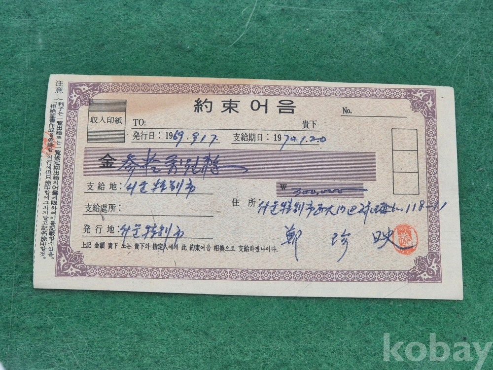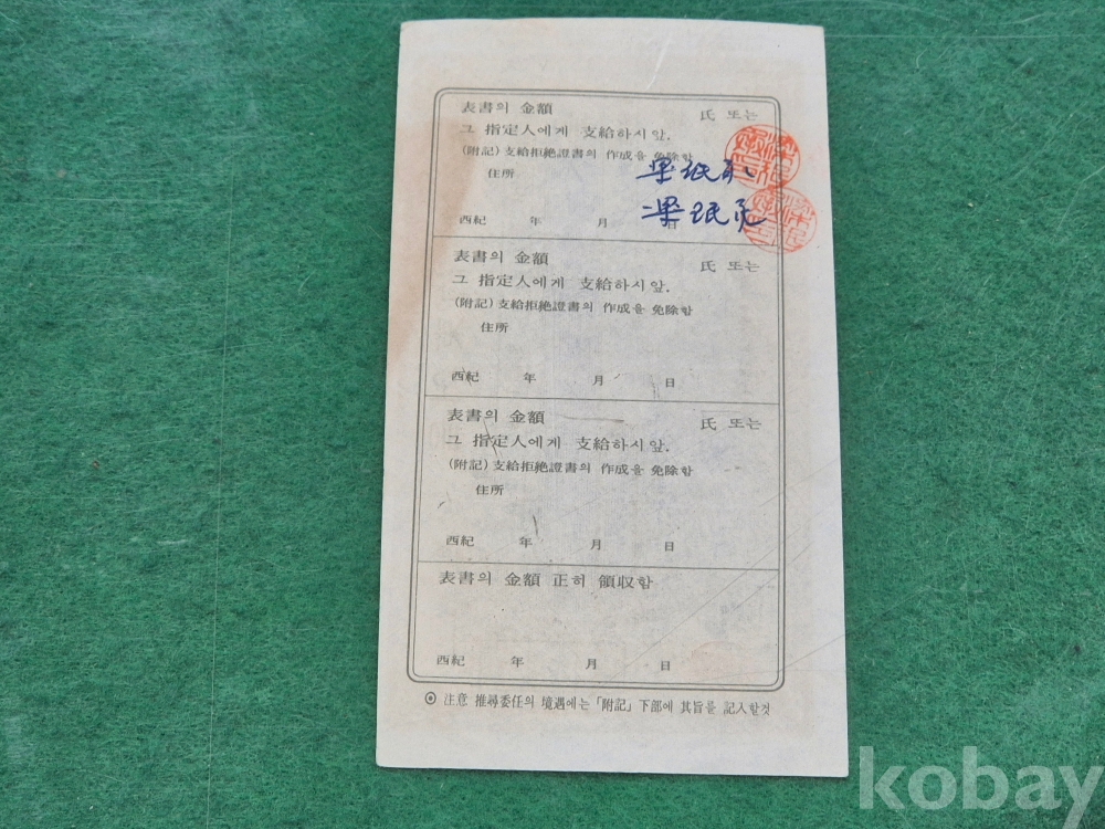 4]. 참고 : 개인 약속어음 2매와 우체국에서 훈련용으로 발행한 통상환금영수증서