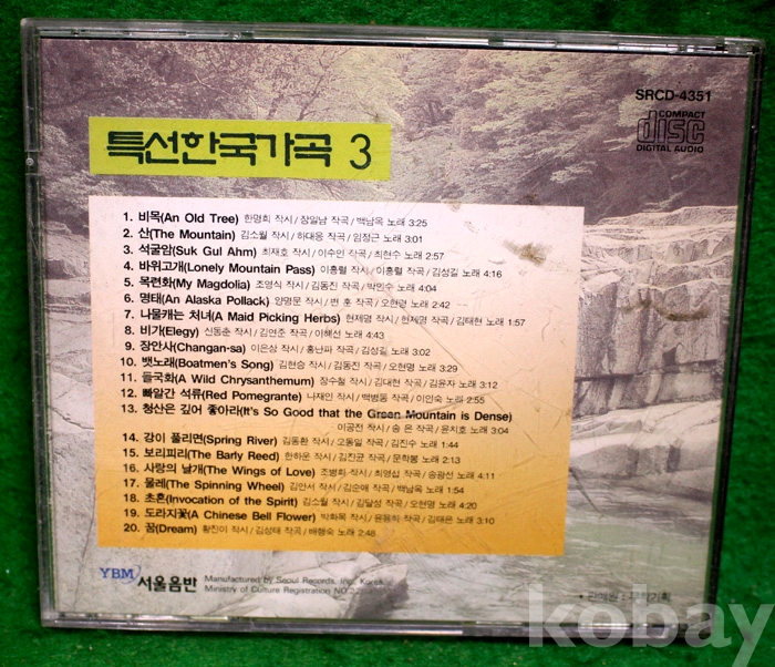 (CD) 특선 한국 가곡 3 - 비목 / 청산은 깊어 좋아라 / 석굴암...