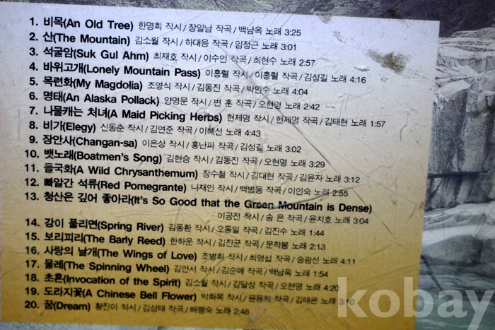 수록 곡 목은 사진을 참조하시기 바랍니다