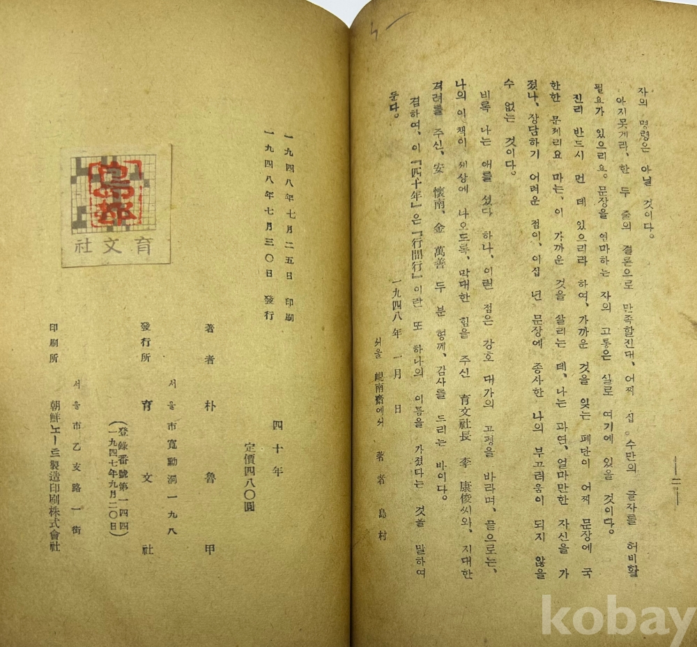 물 품 명 | <취향지가> [44] 1948년 발행, 박완서(朴婉緖)의 스승인 박노갑(朴魯甲)의 마지막 소설 [사십년(四十年)] 초판본 1책 | |||||