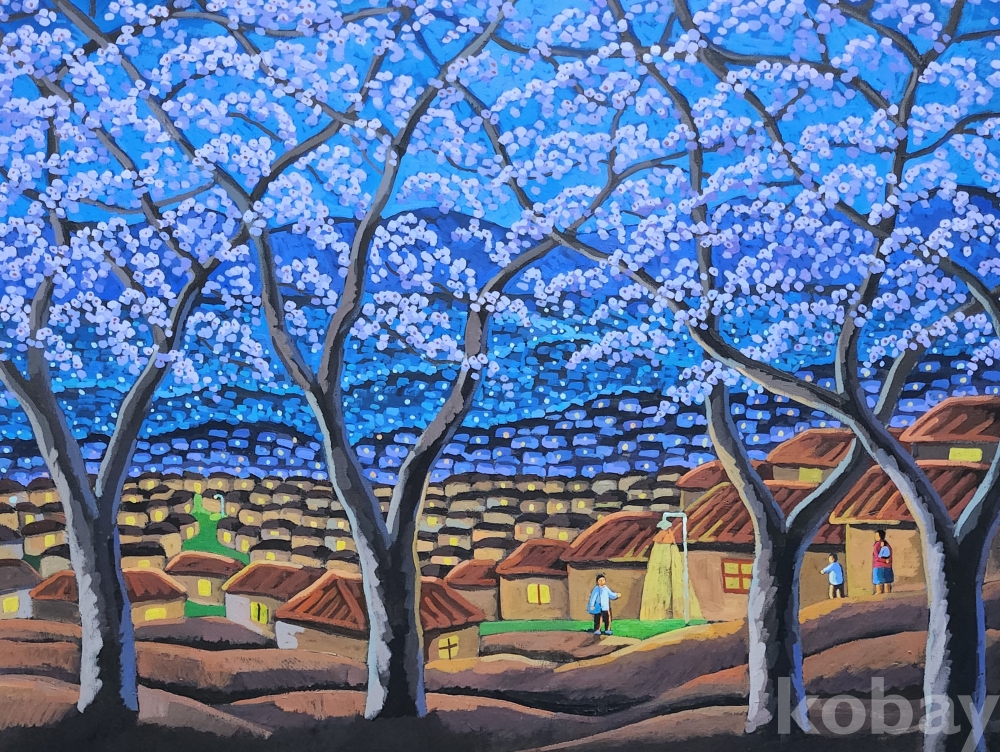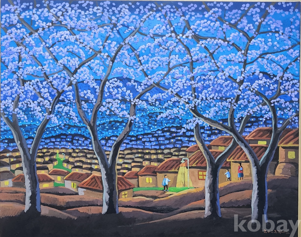 설종보 화백 수암골마을 밤마중 아크릴 30호 원목 새액자 입니다