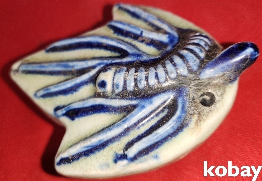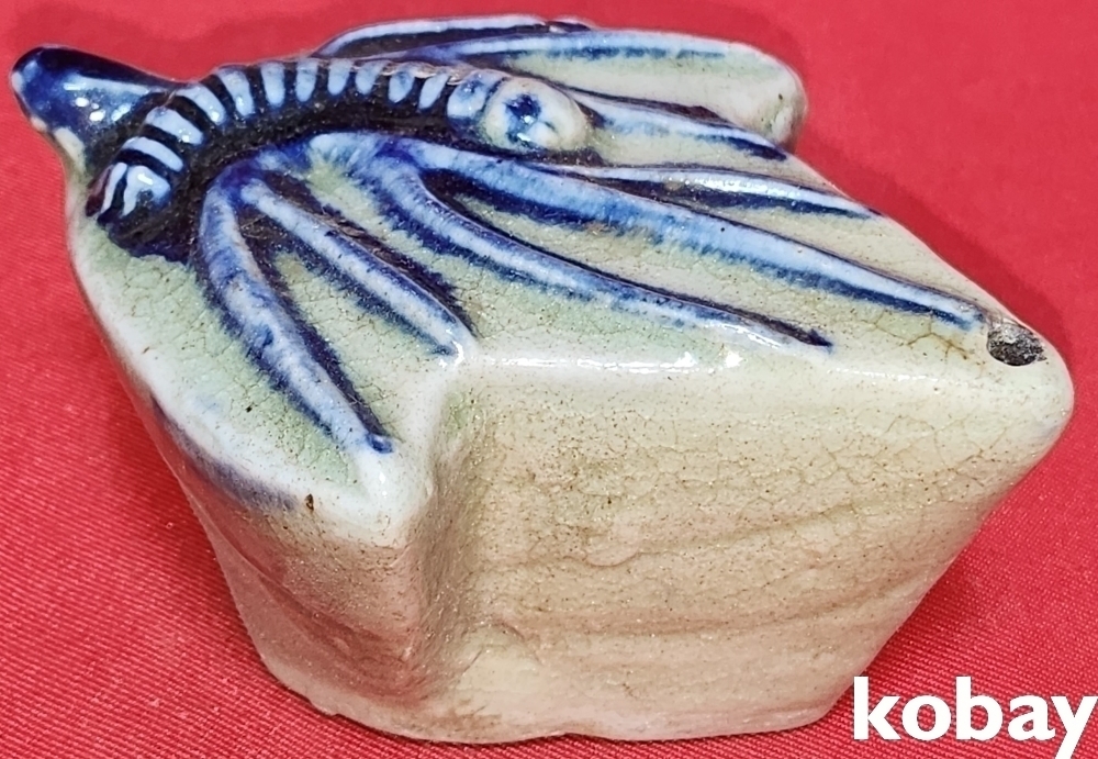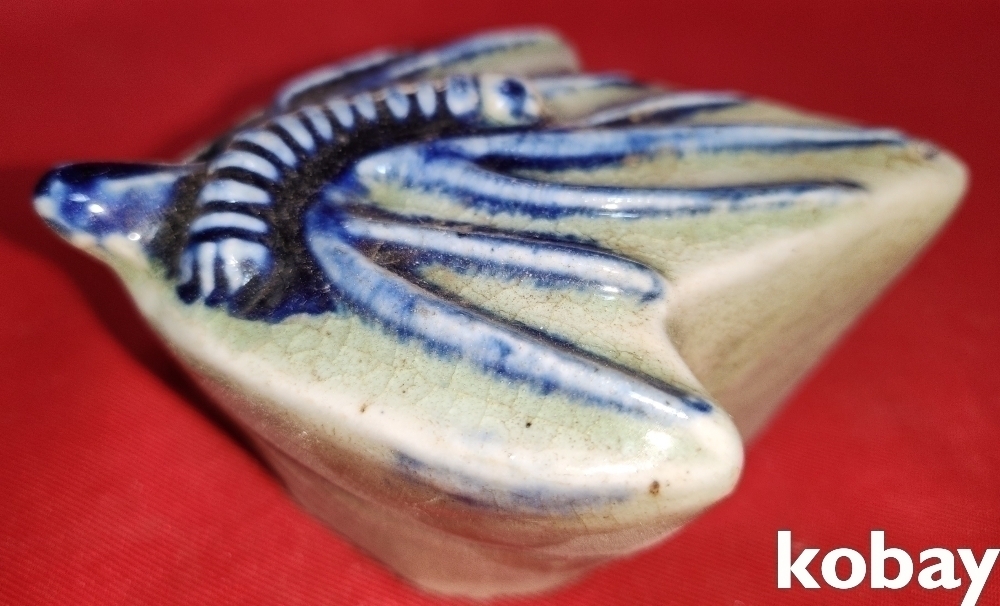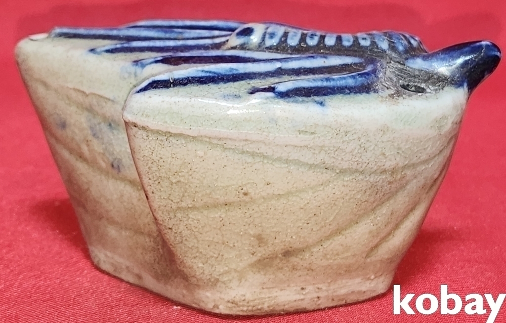청화백자 나무잎.애벌래 문양 연적입니다,