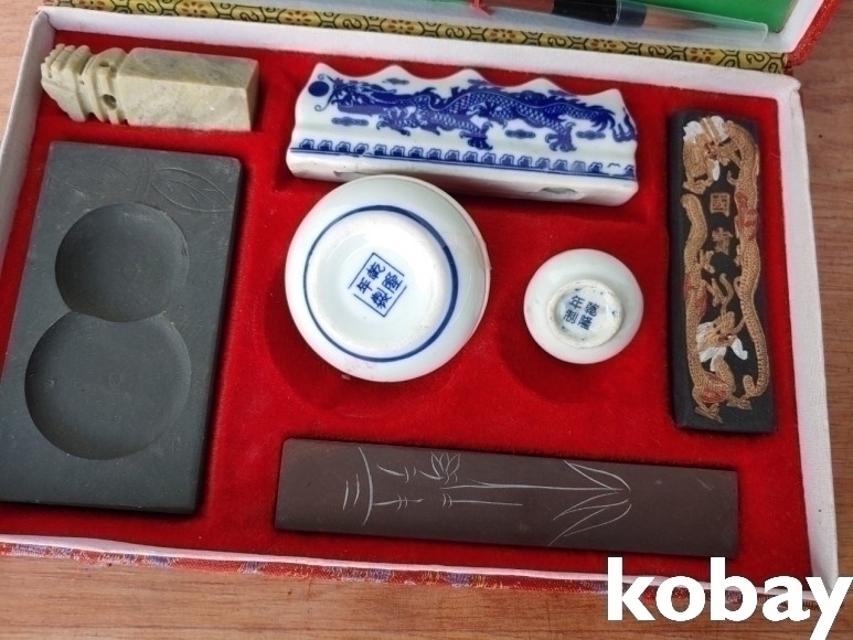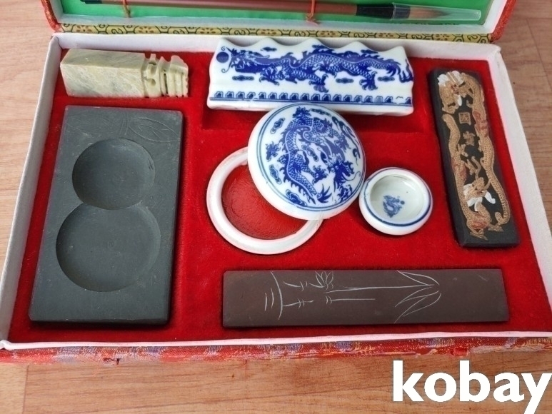 붓, 먹, 벼루, 연적, 인주, 붓 받침, 인주