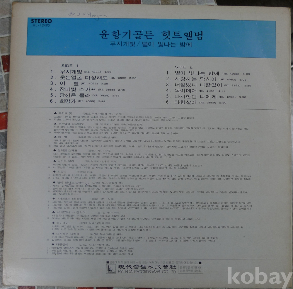 1980년 가수 윤항기 골든 힛트 앨범 음반 LP
