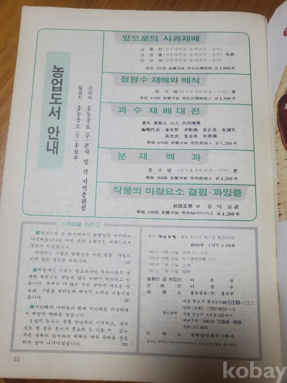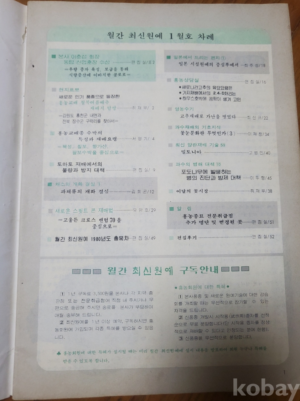 1. 월간 최신원예 통권 231호, 흥농종묘주식회사, 1981년, 52쪽, 상태 상, 사진 참조