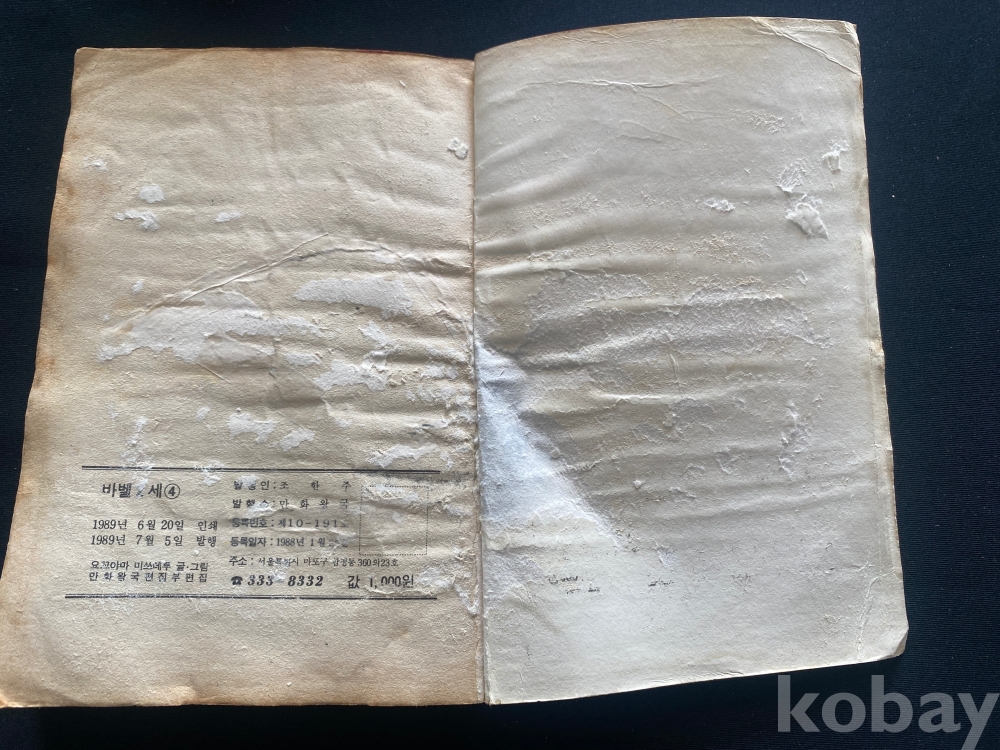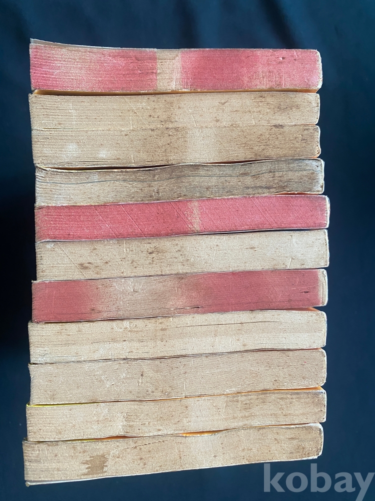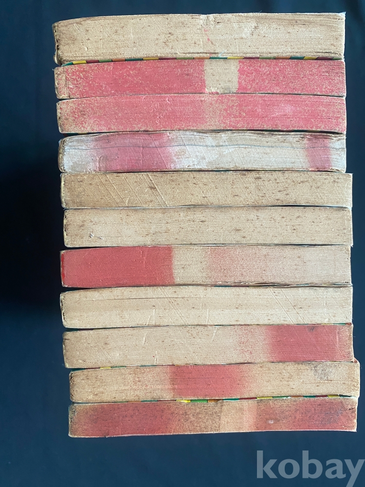 4권은 물에 의한 얼룩이 있습니다. 첫 페이지는 앞 표지와 붙어 있습니다. 마지막 페이지는 뒷 표지와 붙어 있던 것을 뗀 흔적이 있습니다.