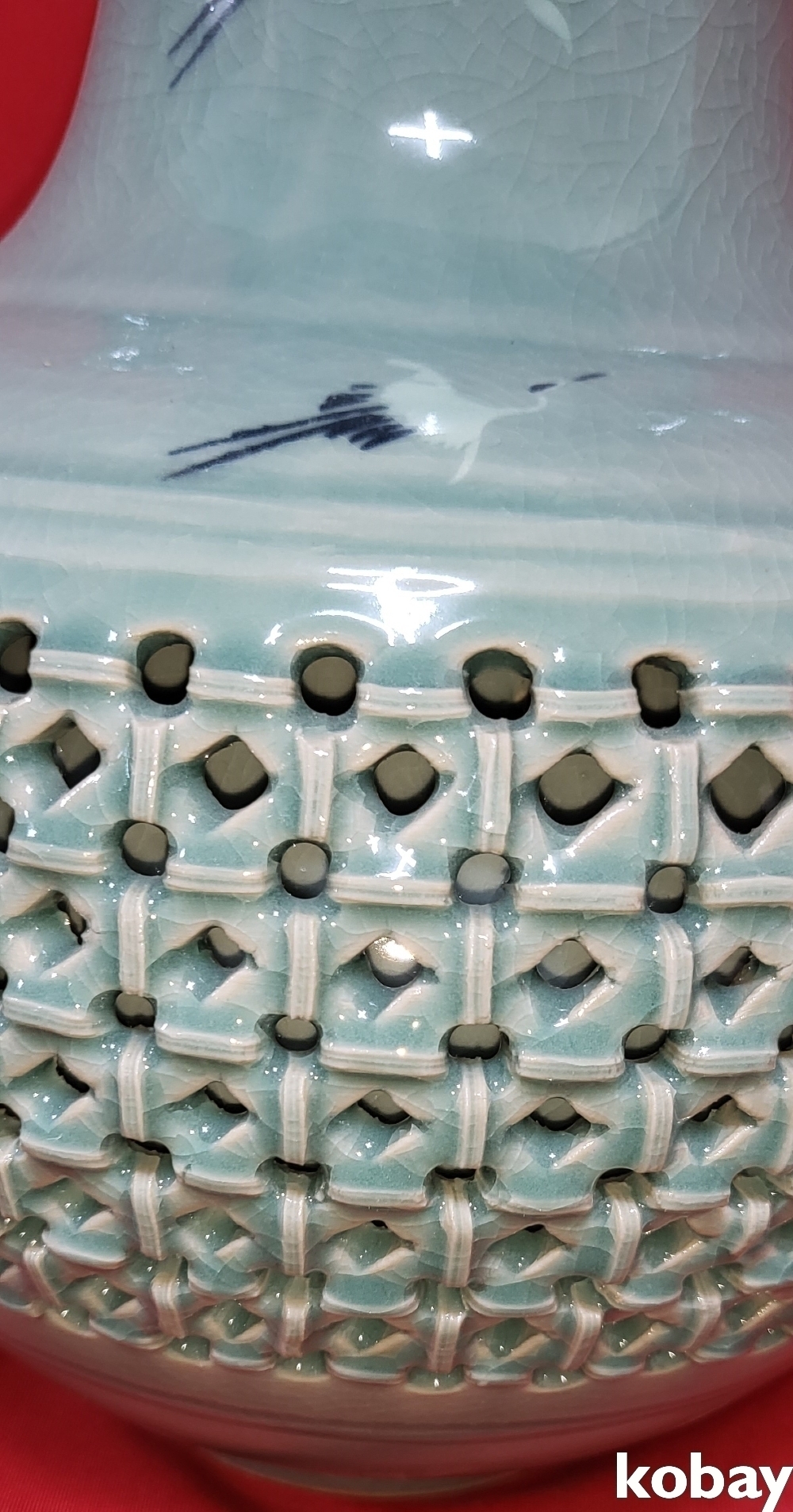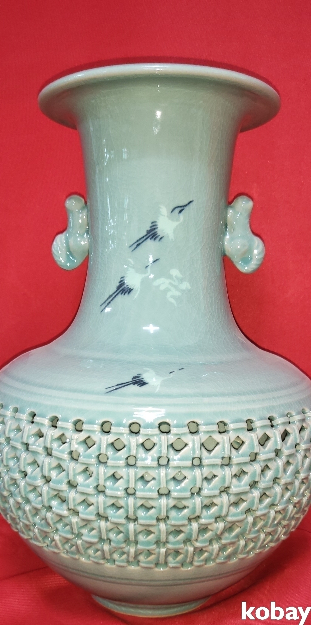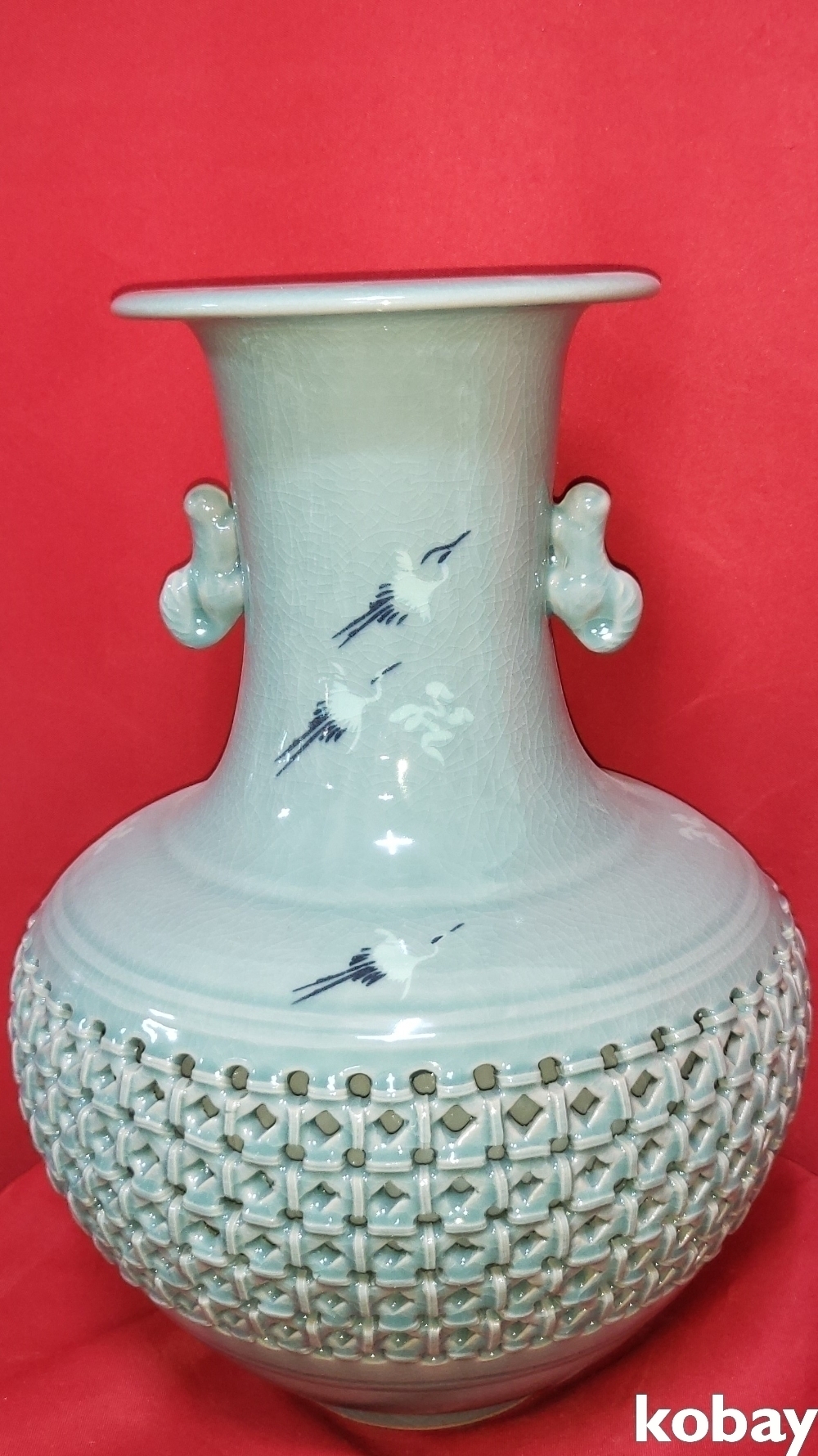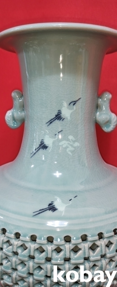 천진(天眞)도예 박희서 作 청자 투각 운학문 양이 큰 도자기입니다,