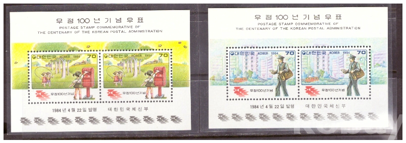 (한국시트) 1984.4.22 우정 100년 2완 sheet of 2 MNH