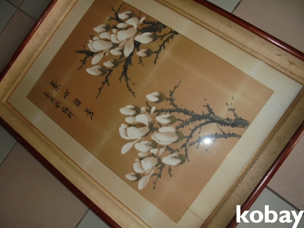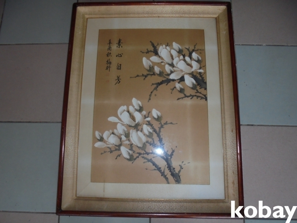 고색으로 전체 깨끗한 꽃다운 모란이피기까지 액자 가로세로 58 x 75 cm 외사진참조