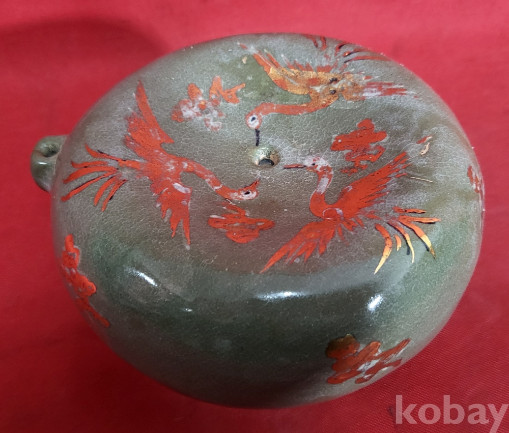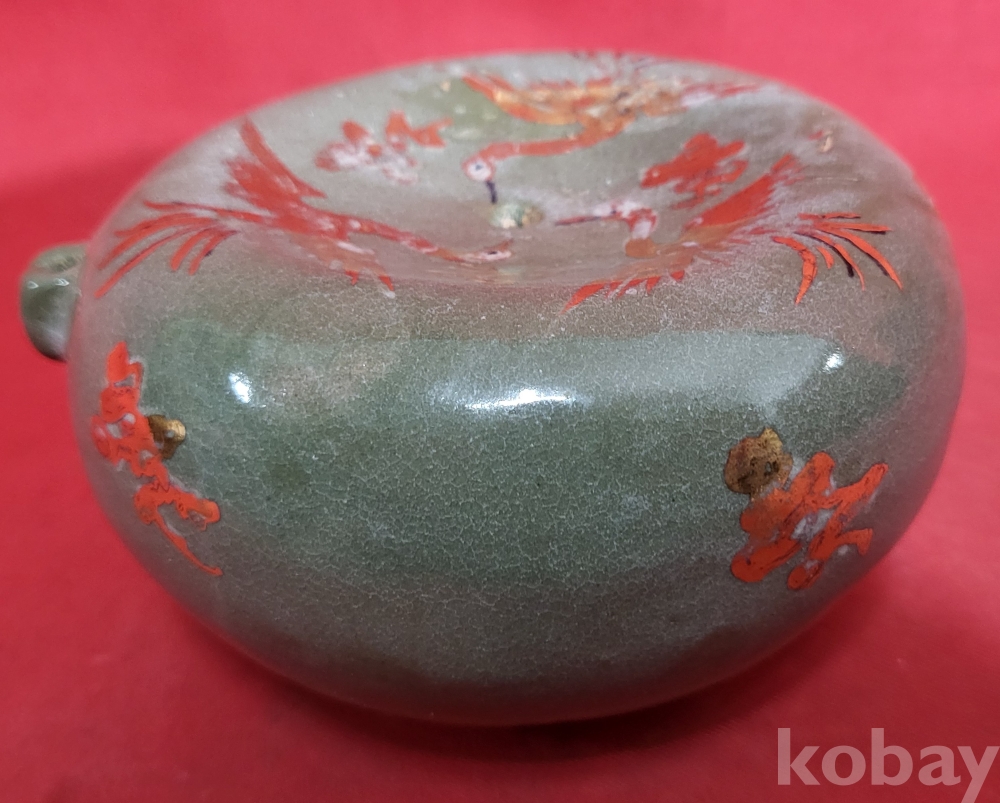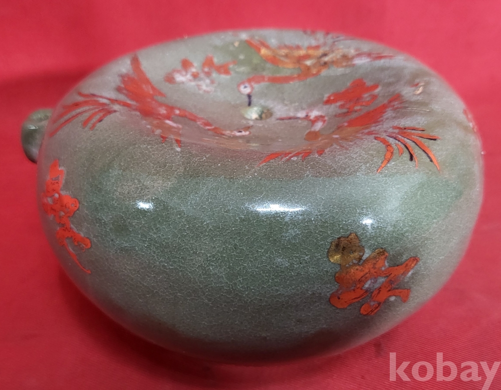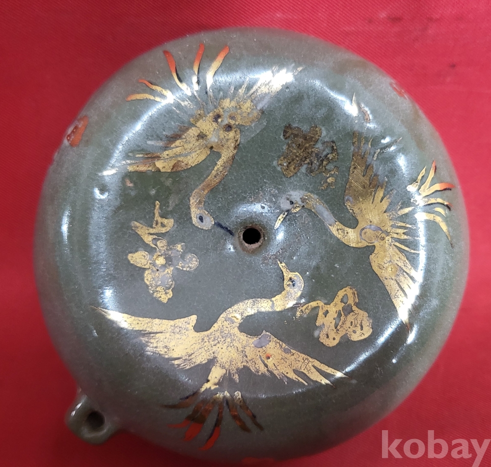 짱짱한 연대 갖춘 금채(金彩) 운학(雲鶴)문양 미감정 연적 (硯滴) 입니다,