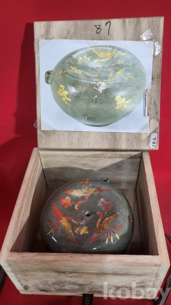 기물의 전체적인 느낌은 고도자기로 보이나 미감정이기에 진위는 알 수가 없습니다,