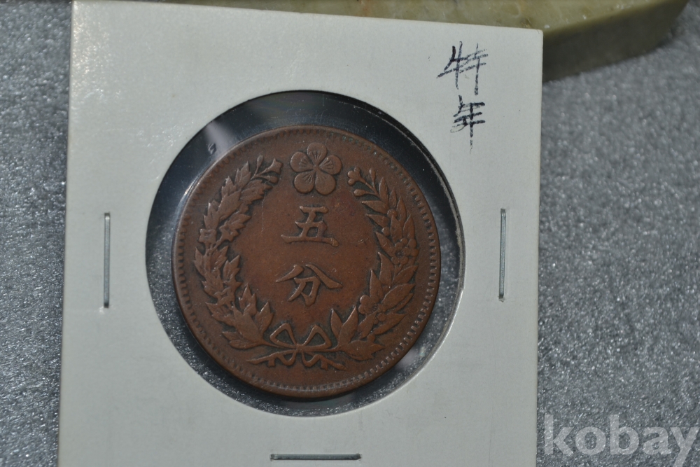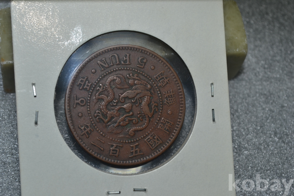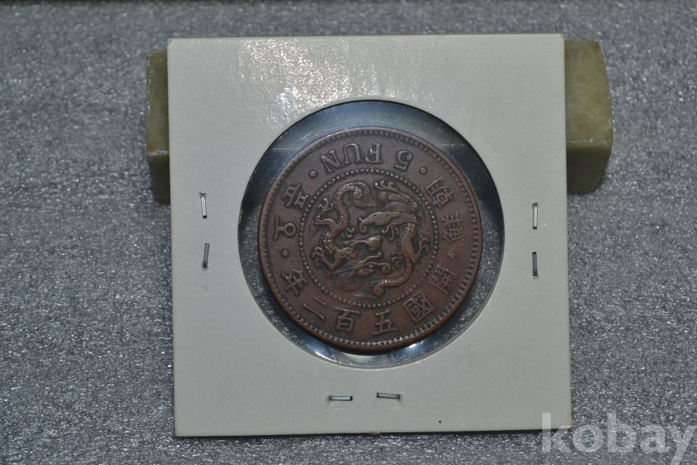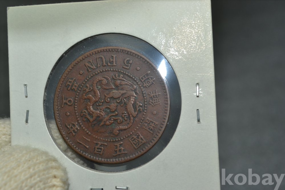 " 매우 귀중한 왕특년도~!! 희소종류 개국502년도 큰글씨체 대자(大字) 오푼~ 매우 귀한종류 ".. " 조선 개국502년(1893년)(대자) 5푼(오푼) 청동화 " .. 이화장 진품~ 조선말 구한국 근대전 / 도안문양 좋은 보존상태