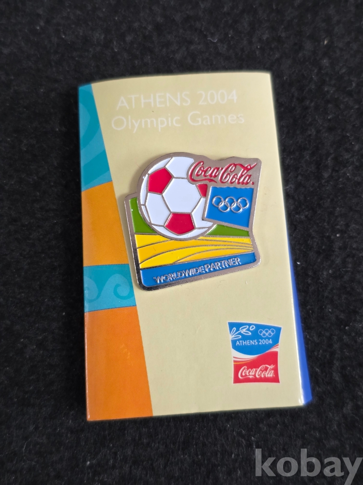 (((뺏지콜렉션/올림픽자료/코카콜라자료))) 2004 ATHENS (그리스 아테네) 올림픽기념 (WORLDWIDE PARTNER 코카콜라) 축구 뺏지 (일본발행/미사용)