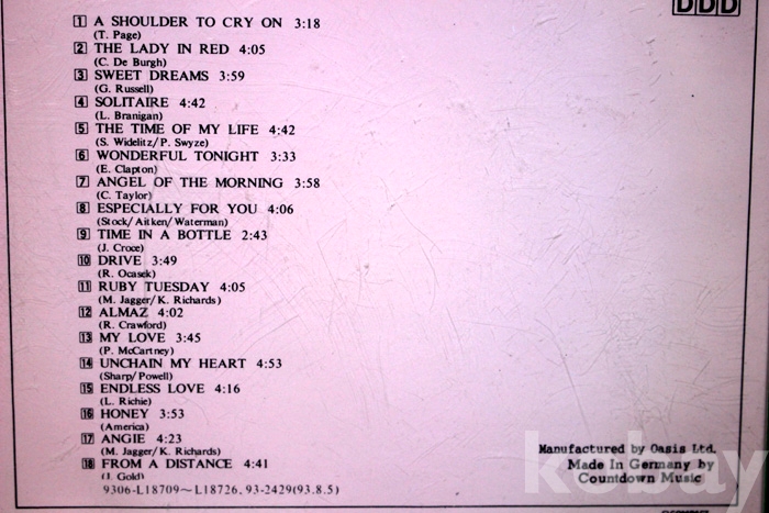 수록 곡 목은 사진을 참조하시기 바랍니다