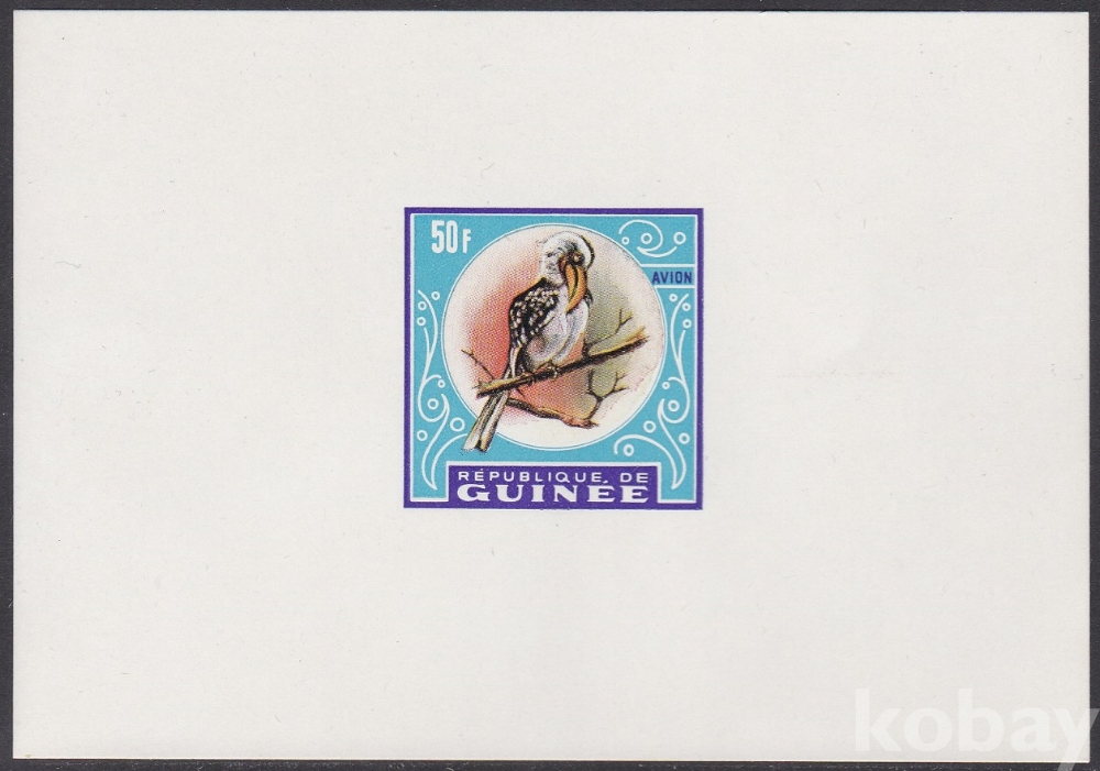 (하늘천) 기니 1962년 50fr, 야생동물, 동물상(動物相), 새, 코뿔새, 미발행 하늘색 디럭스 프루프