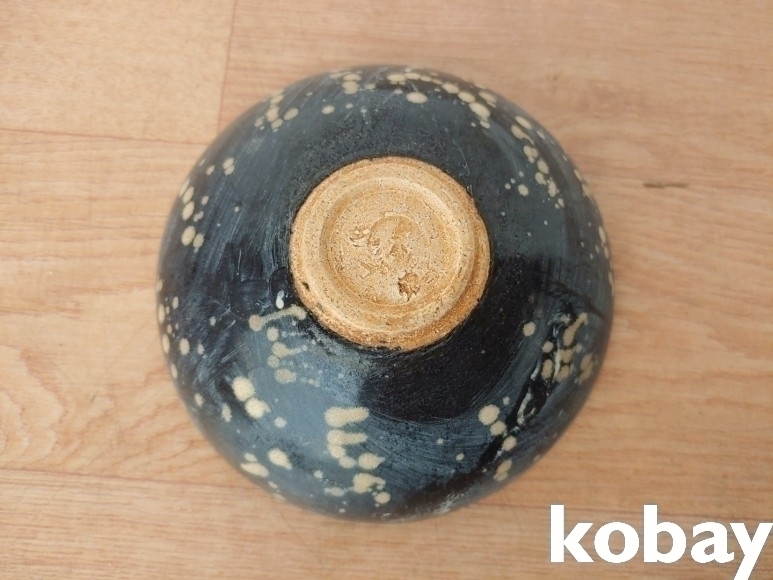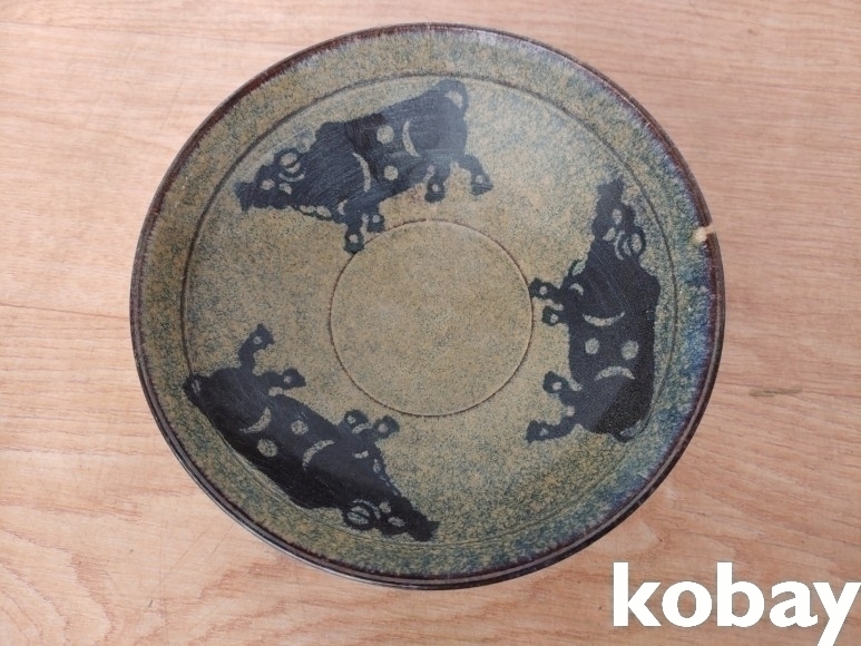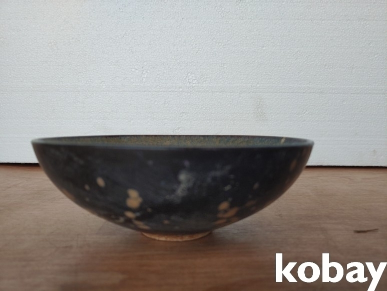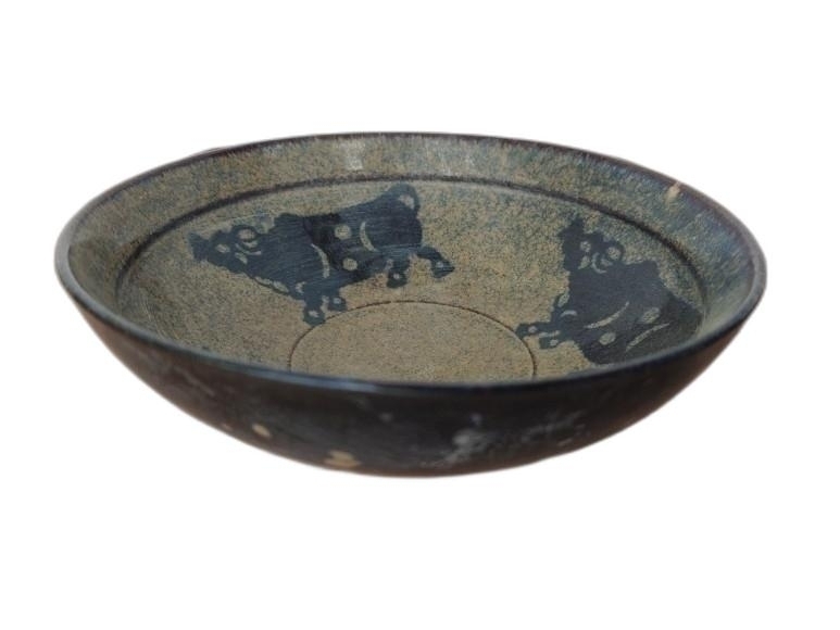 소 문양이 있는 흑유 다완 도자기 입니다.
