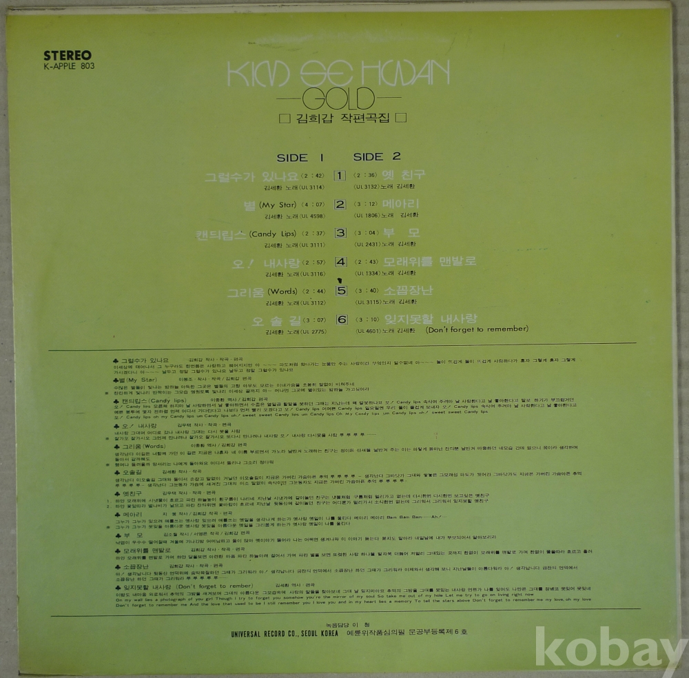 | 제조국 | 한국 | 발매연도 | 1980 |