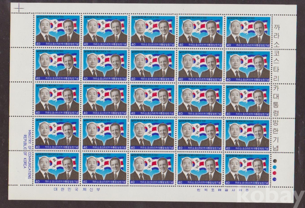 (한국전지) 1981.10.12 까라소 코스트리카대통령 방한 sheet of 25 MNH