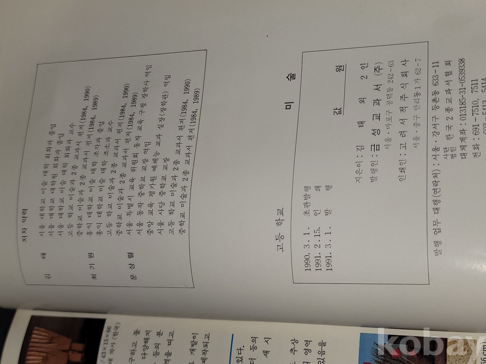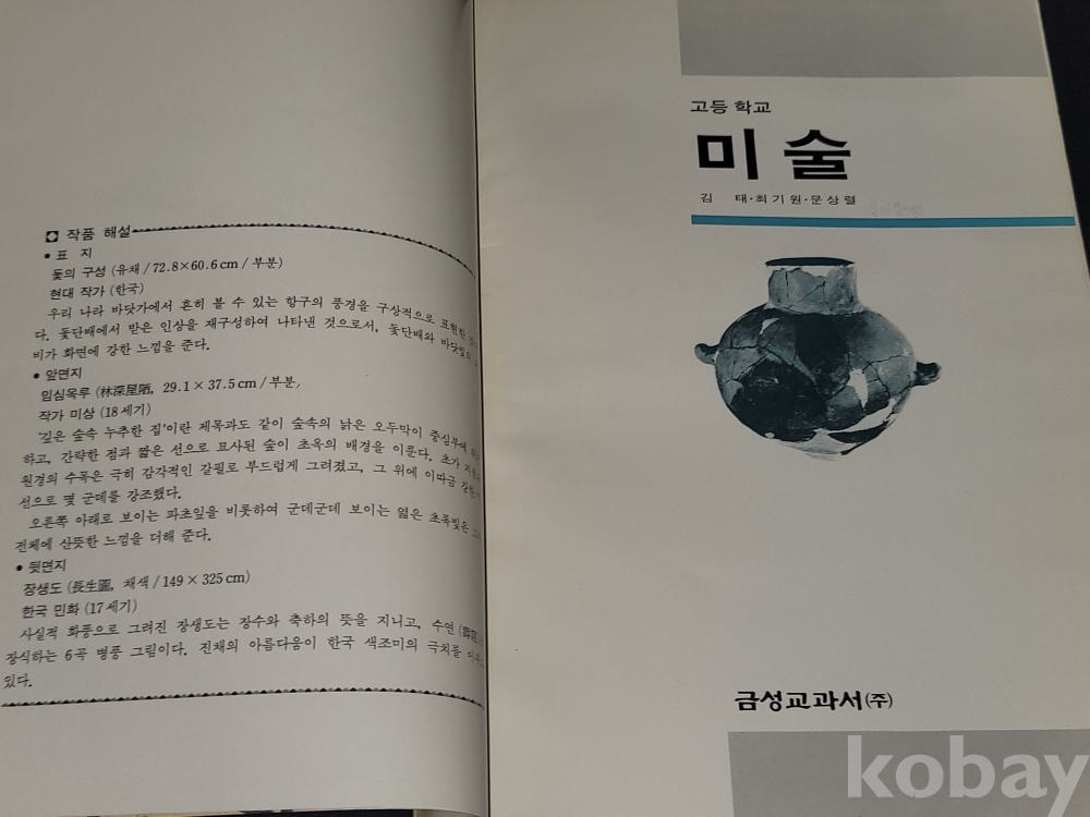 빈티지 세월 감이 느껴지는 1988년, 1989년, 1990년, 1991년 미술 중학교, 고등학교 교과서 4권 일괄입니다.