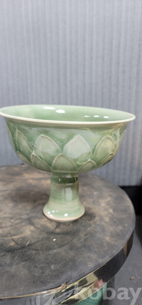 j-38.연대가오래된 연화꽃문양 청자마상배