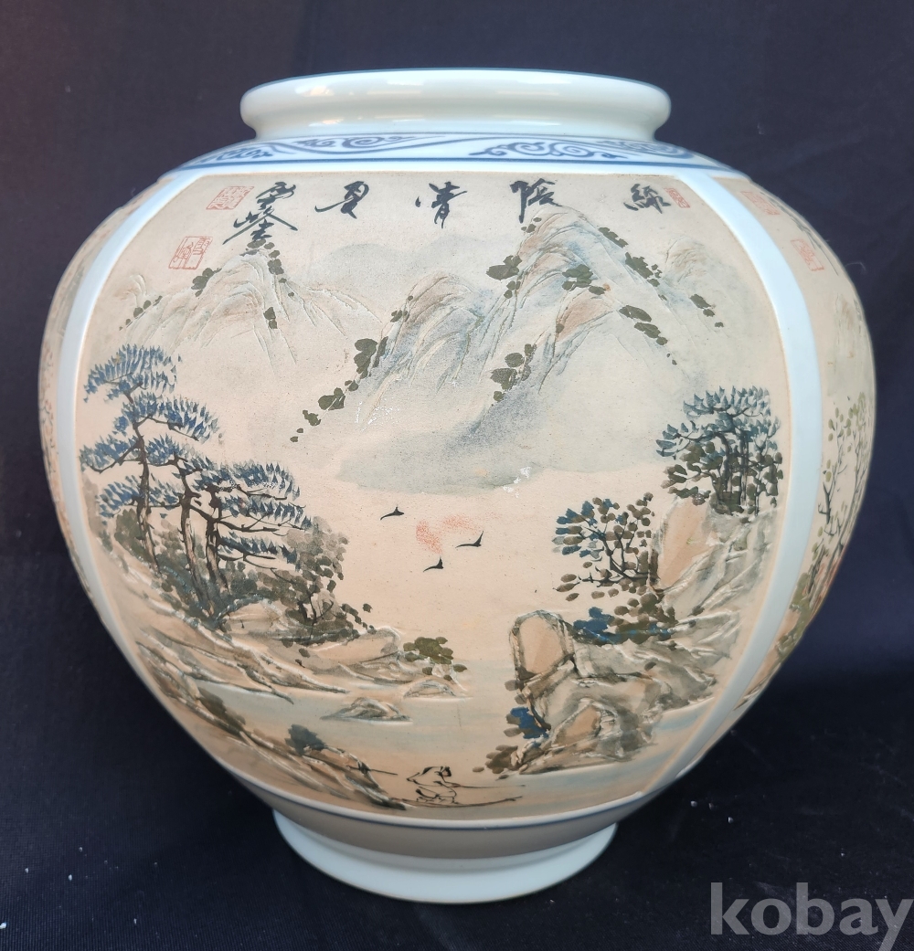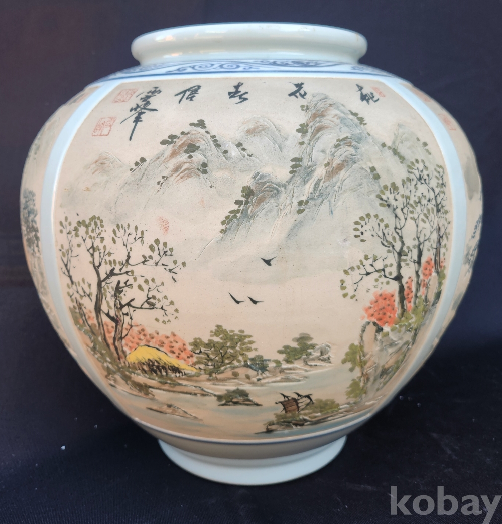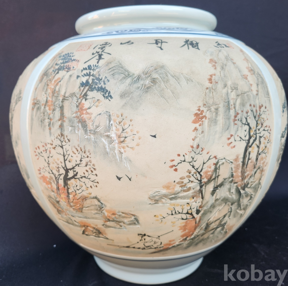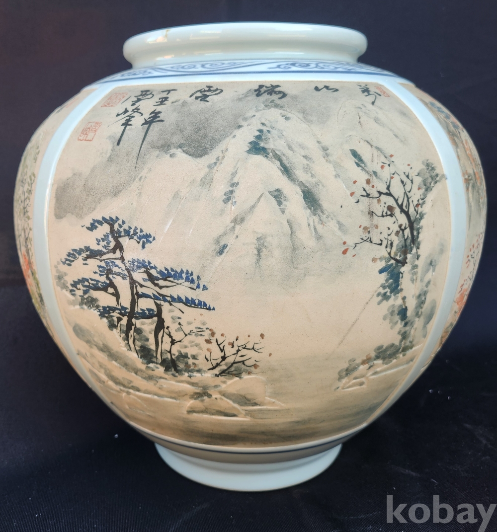 설봉도예[雪峯陶藝] 박찬종[朴贊種] 백자양각사계산수문호[白磁陽刻四季山水紋壺]