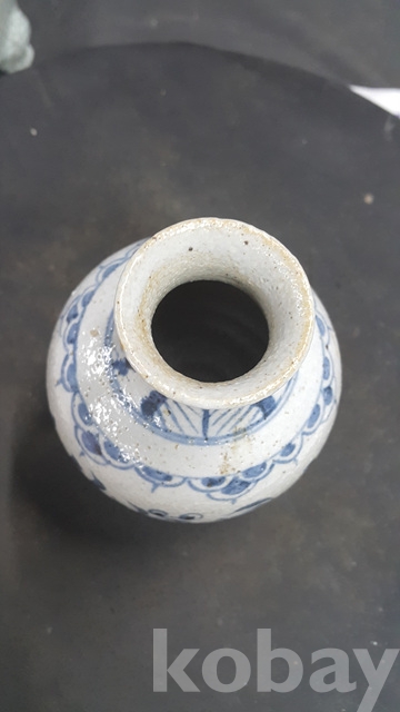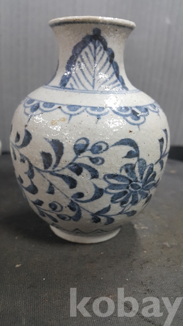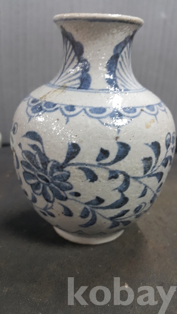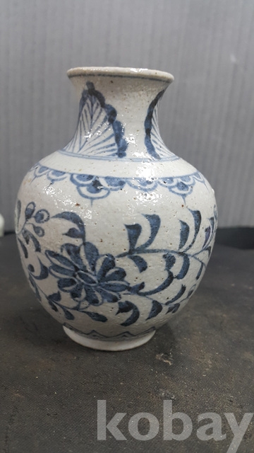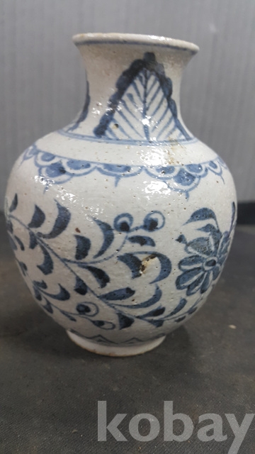 d-217.오래된수공으로그린 파초목단문 청화백자작은 주병