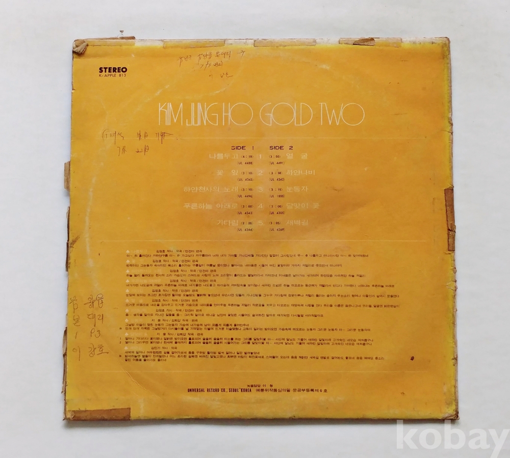 VG : 생활 기스 다수, 가벼운 노이즈 존재 발매정보 알수없음 가사지여부