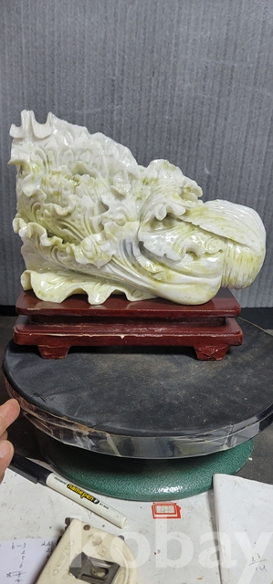 b-92.(대)천연옥으로정교하게깍아만든 배추문양장식품