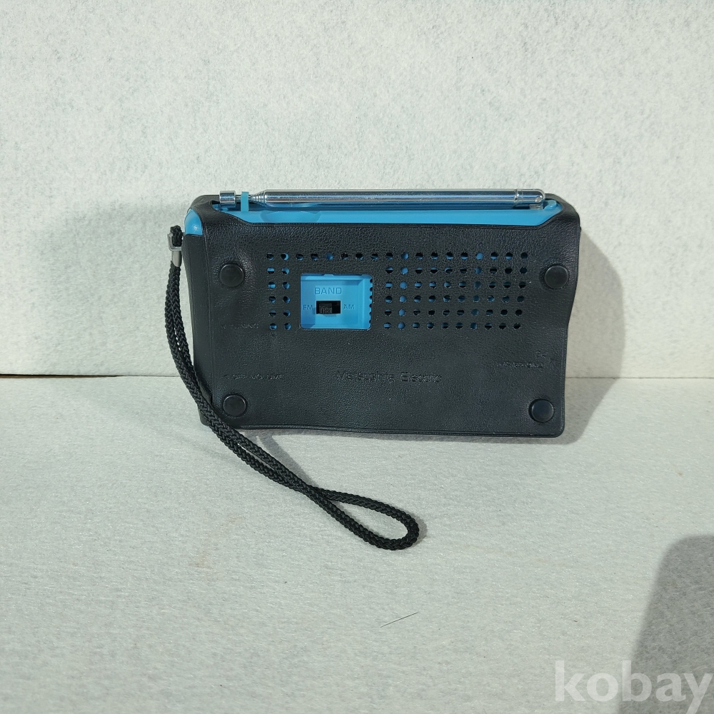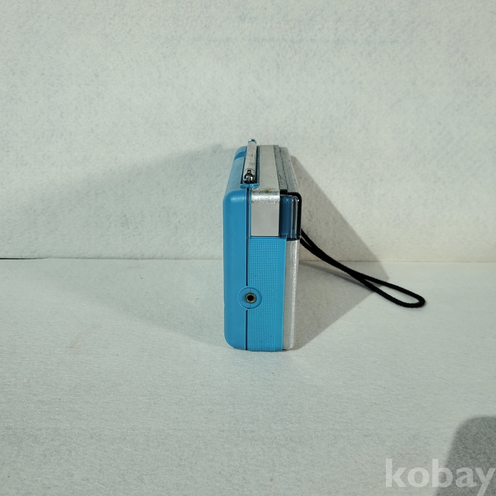 이 제품의 가장 매력적인 요소는 단연 시선을 사로잡는 화사한 '하늘색(파스텔 블루)' 바디입니다. 흑백이나 칙칙한 어두운 색상이 주를 이루던 당시 가전 시장에서, 이토록 경쾌하고 팝아트적인 색채를 과감하게 적용한 휴대용 라디오는 매우 드물었습니다. 전면의 스피커 그릴과 은빛 테두리, 그리고 상단의 다이얼 조작부는 7080년대 특유의 아기자기하면서도 실용적인 산업 디자인의 정수를 보여줍니다. 손목에 스트랩을 걸고 동네 골목길을 누비며 유행가에 귀 기울이던 우리네 청춘들의 소박하고도 밝았던 일상이 이 작은 기기 안에 오롯이 스며 있습니다.