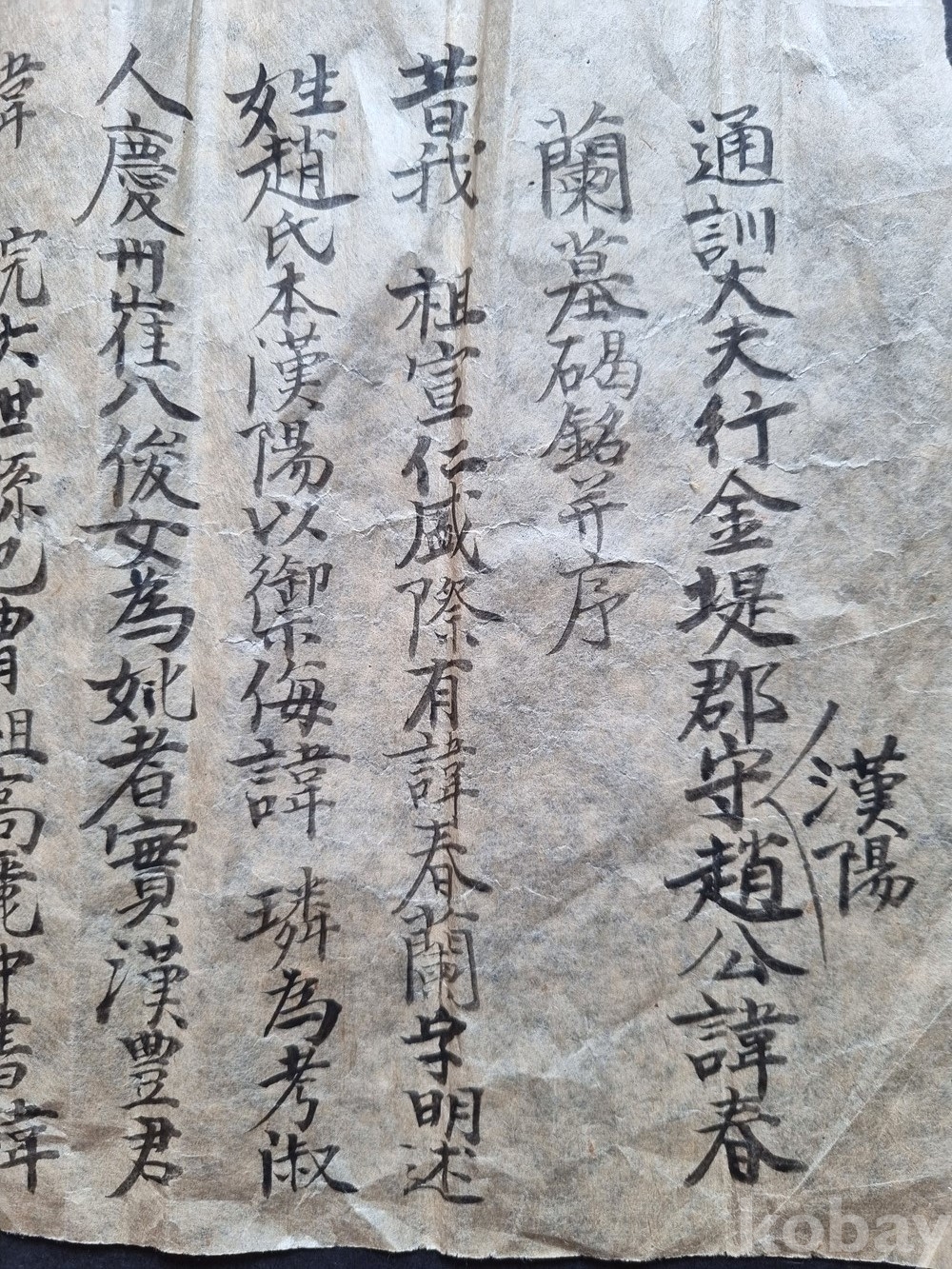 한양 조씨 **조춘란(諱 春蘭, 字 明述)**의 생애와 가문의 내력,