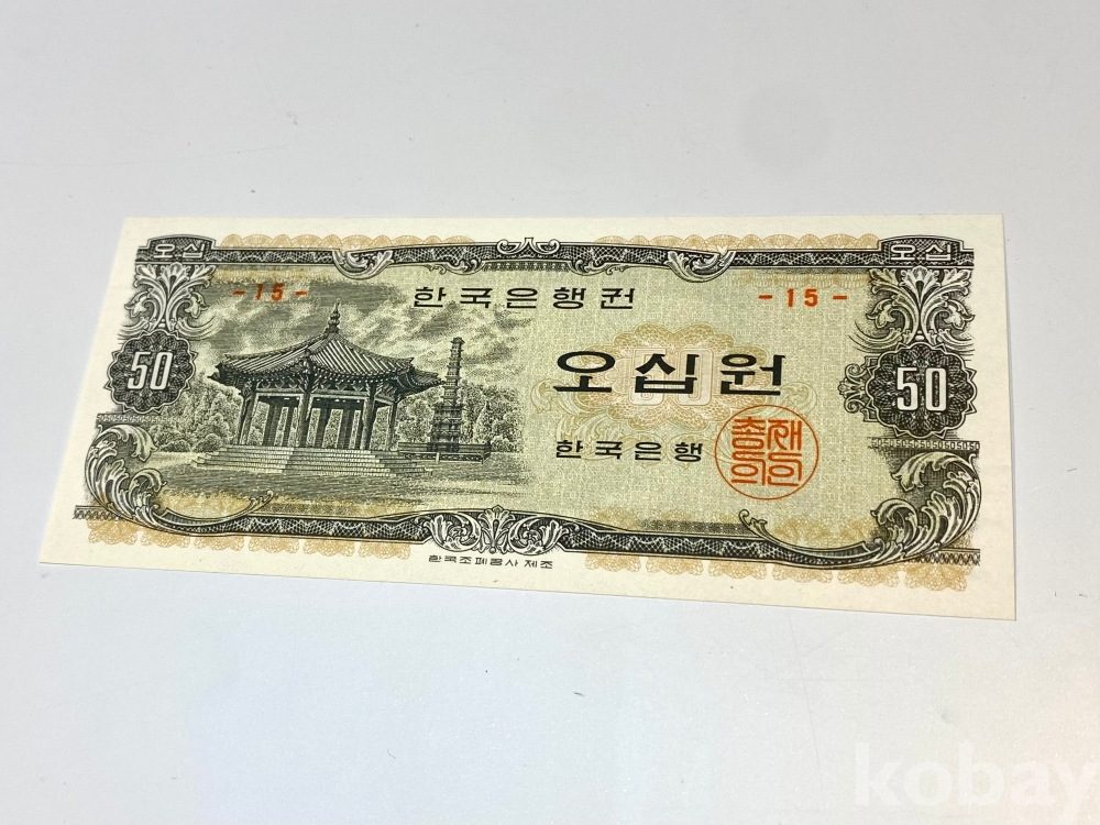 [미사용★] 한국은행 나 50원 오십원 팔각정 판번호 15