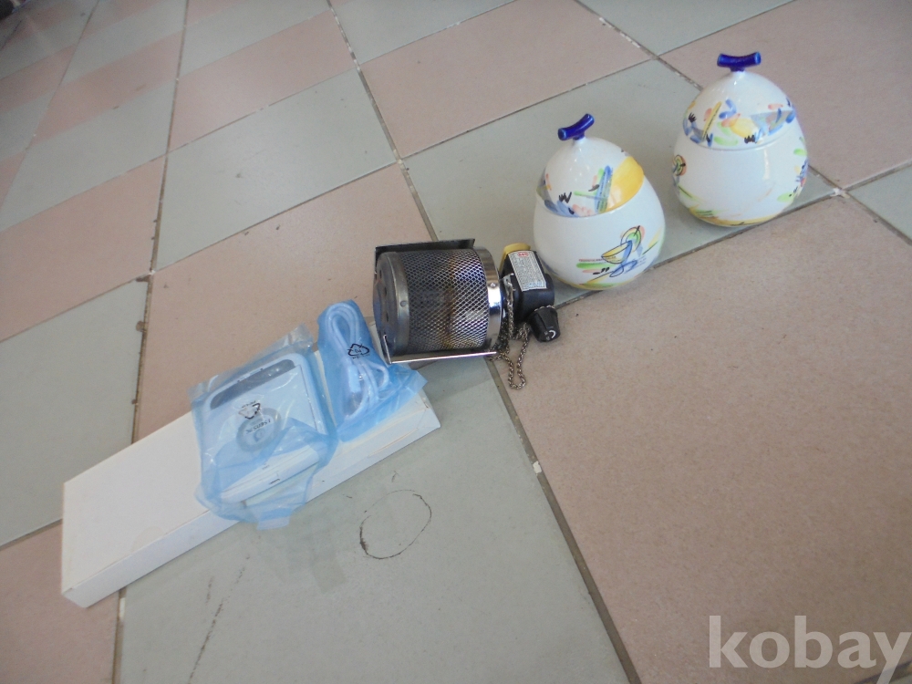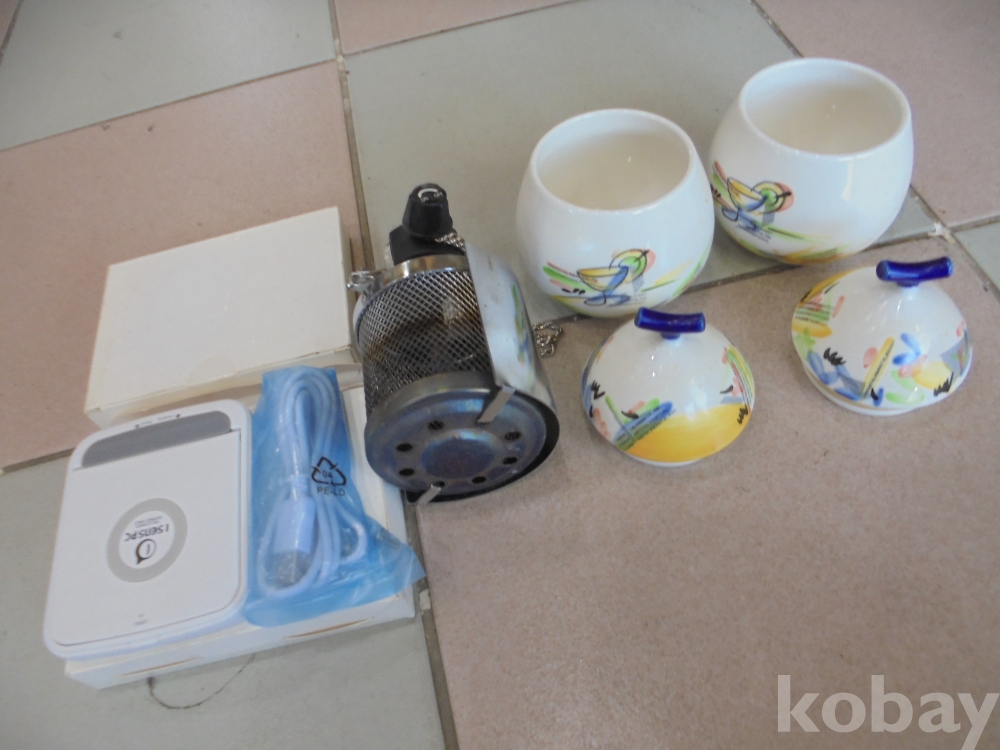 멋있는 외국 무늬의 투껑있는 고급 도자기 양념통 2점과 한국가스안공사검사필 안전한 텔바이스 휴대용 부탄가스렌지외 1점