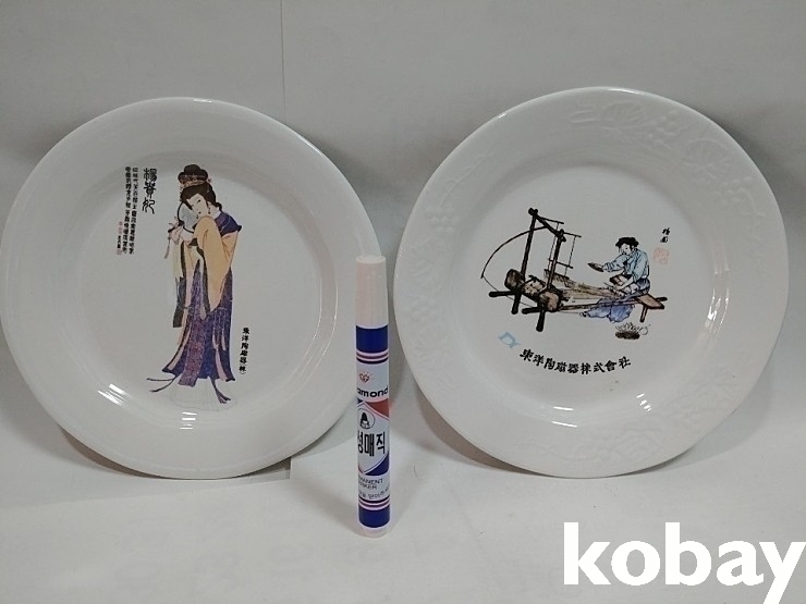 예전 그릇회사에서 기념으로 만든 접시 2개입니다 국산제품