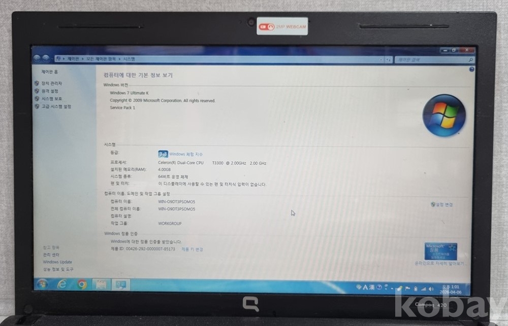 오래된 모델이지만 기본적인 문서 작성이나 인터넷 서핑용으로 사용 가능합니다.
