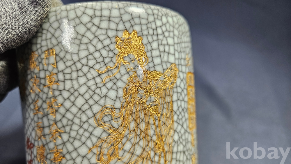 표면에 금채로 글귀와 미인의 모습이 보여지는