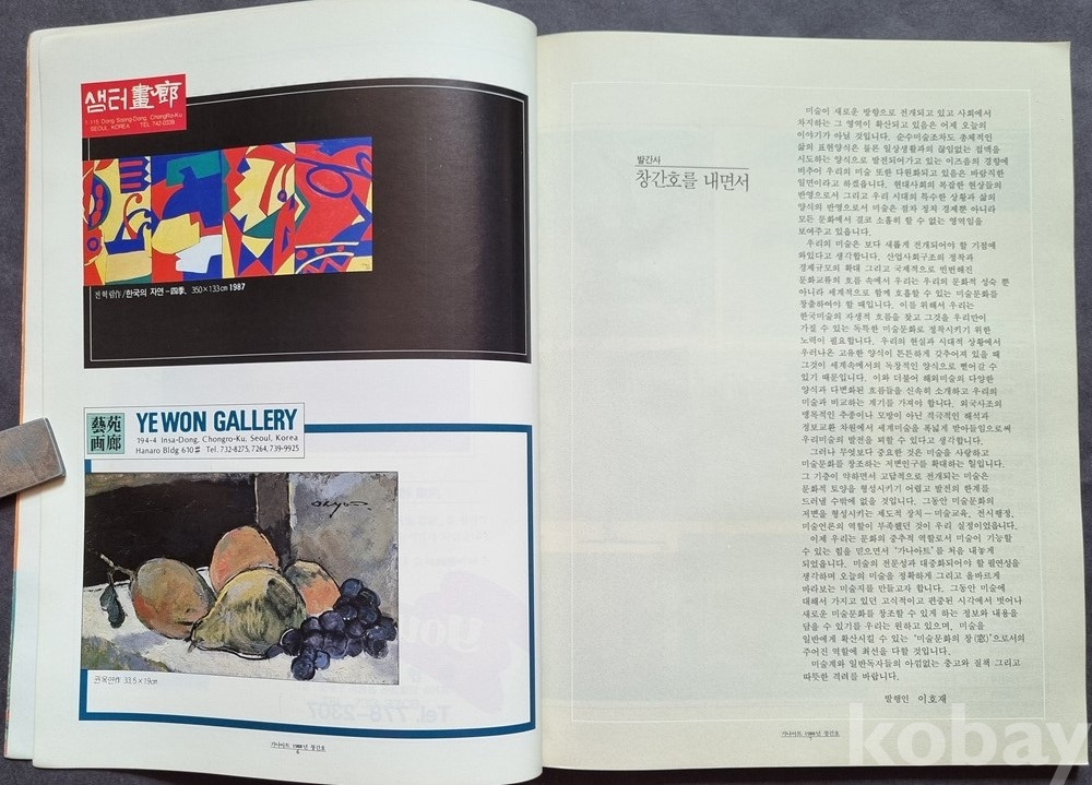 희소성: 가나아트 갤러리의 역사를 시작한 첫 번째 호라는 점에서 소장 가치가 확실합니다.