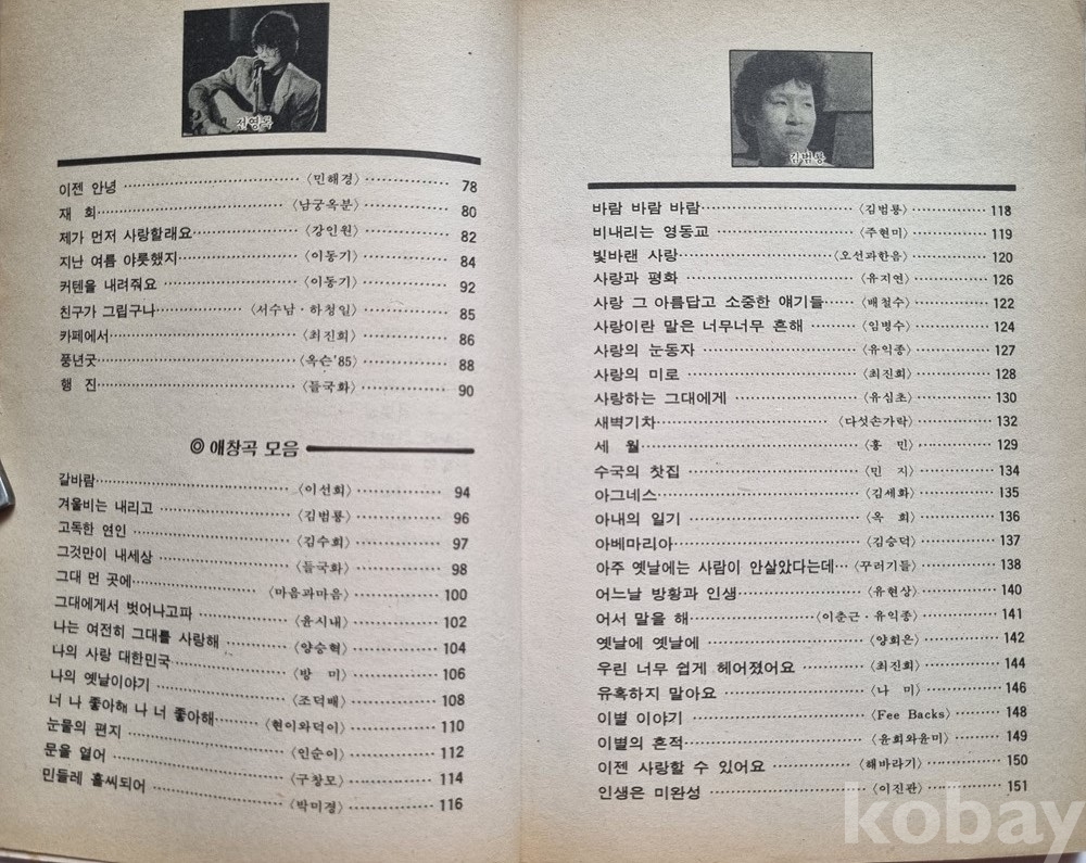 구창모 '희나리', 나미 '슬픈 인연', 조용필 '허공' 등 전설적인 명곡들의 악보가 실려 있습니다.