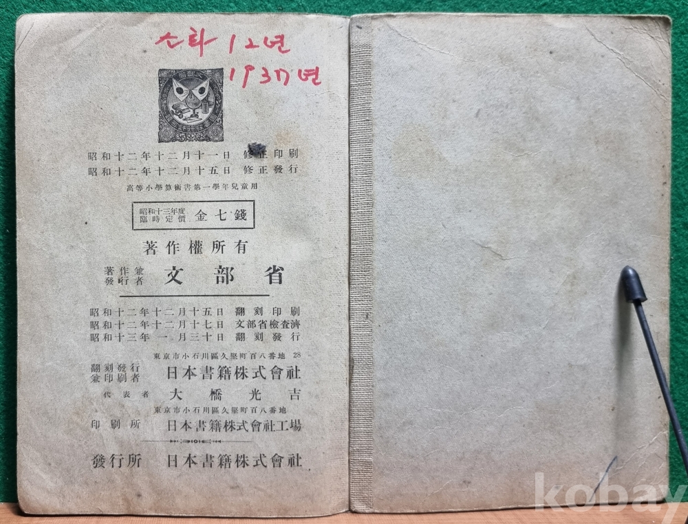 / 발행처 : 문부성. 소화 12년 발행.