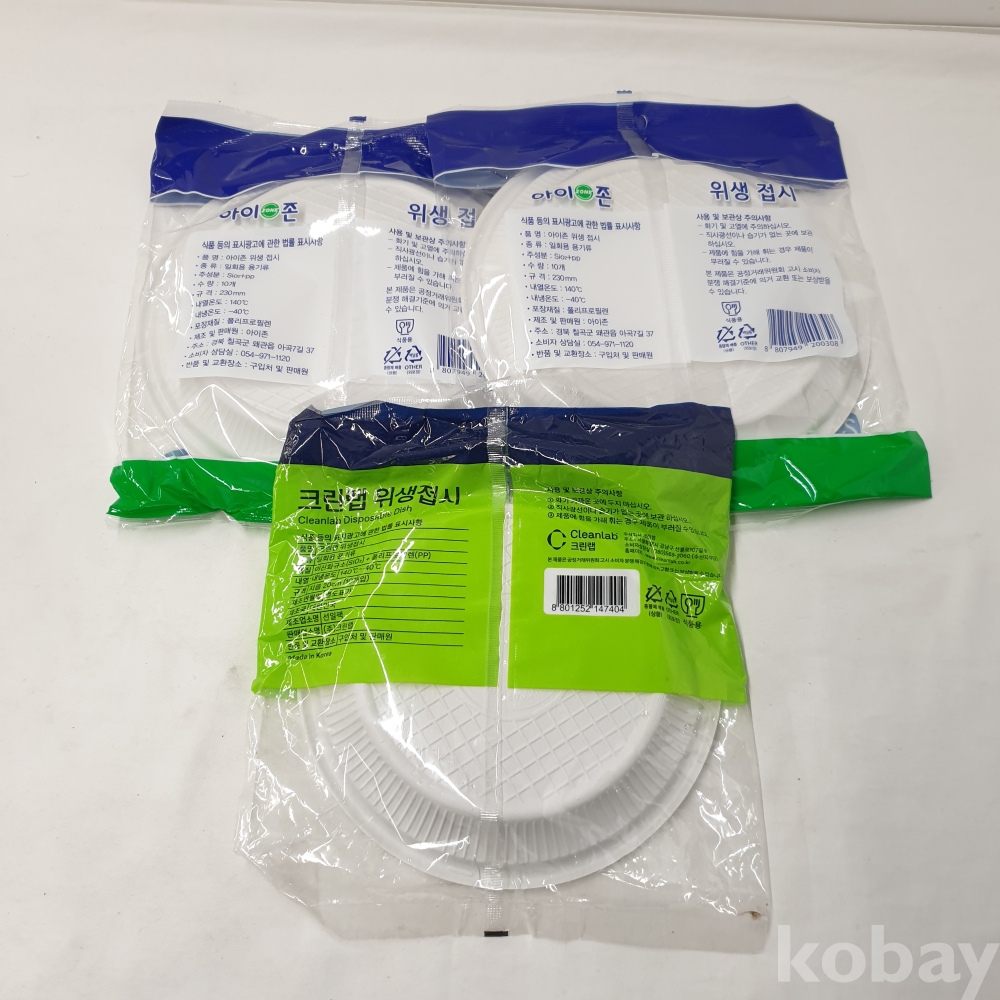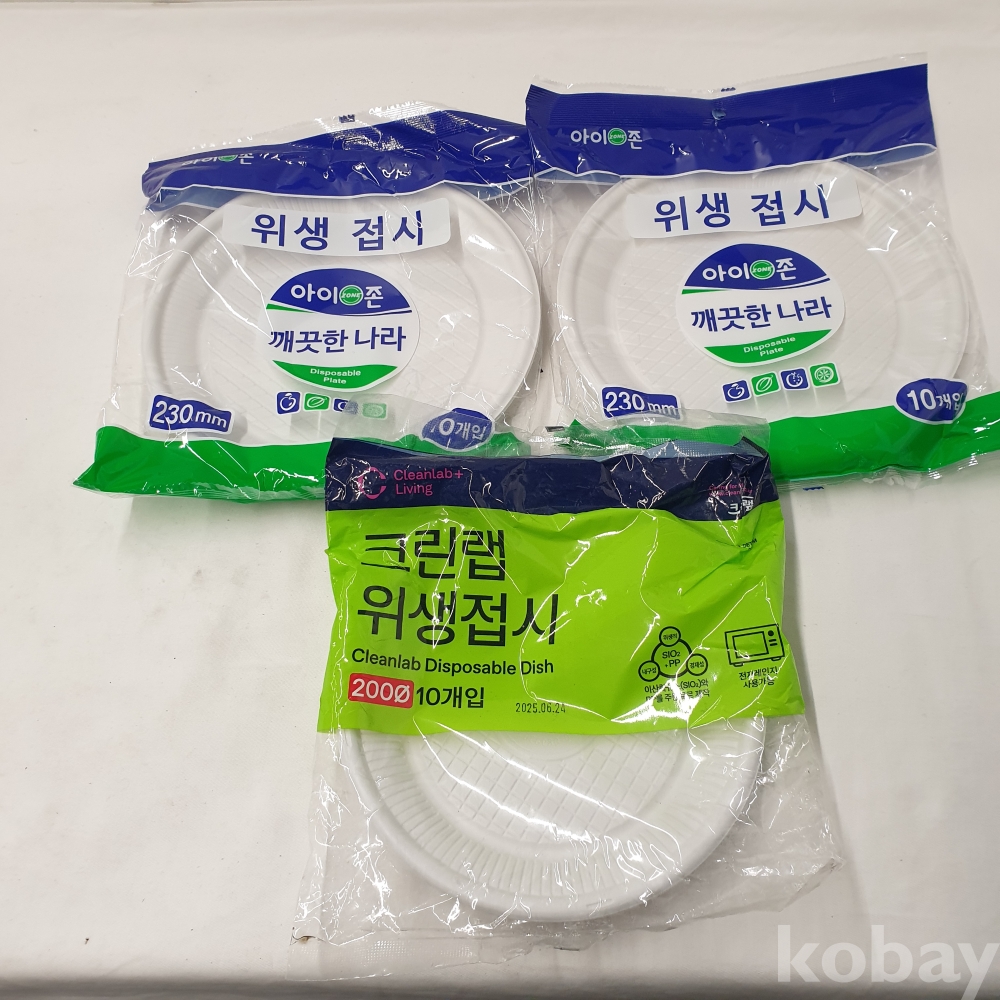 [*천원행복*] J - 4 - 0220 여러가지 일회용품 (접시 230mm 10개입 2세트, 접시 220mm 10개입 1개, 종이 용기 520mm 10개입 1개)
