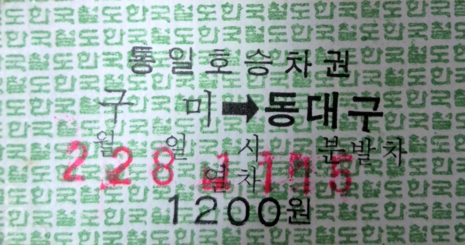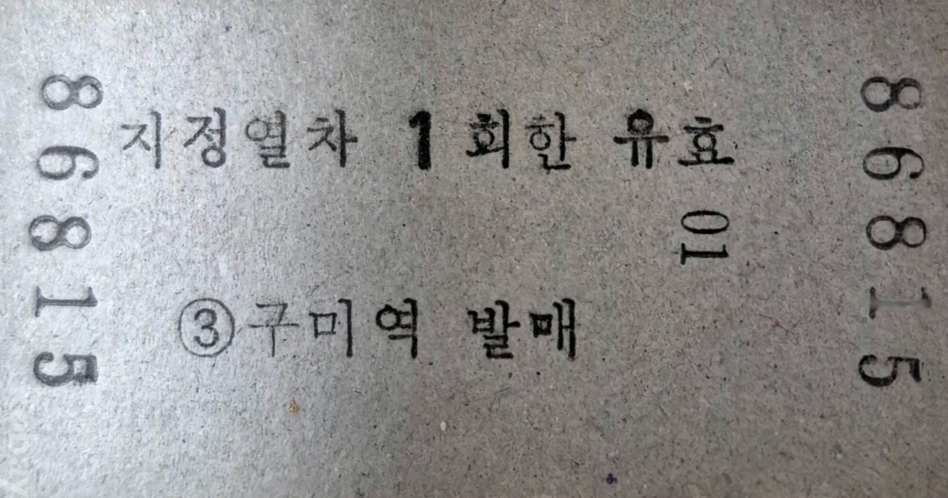 통일호 승차권 구미-동대구 일반입니다.(사용제)